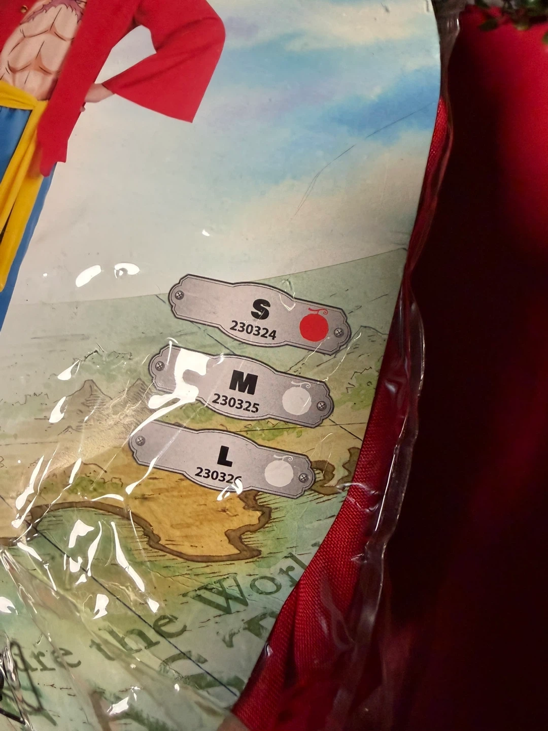 Selling a One Piece Luffy costume for kids! This set includes the iconic straw hat, red jacket, blue shorts, and yellow sash. Perfect for Halloween or cosplay fun!