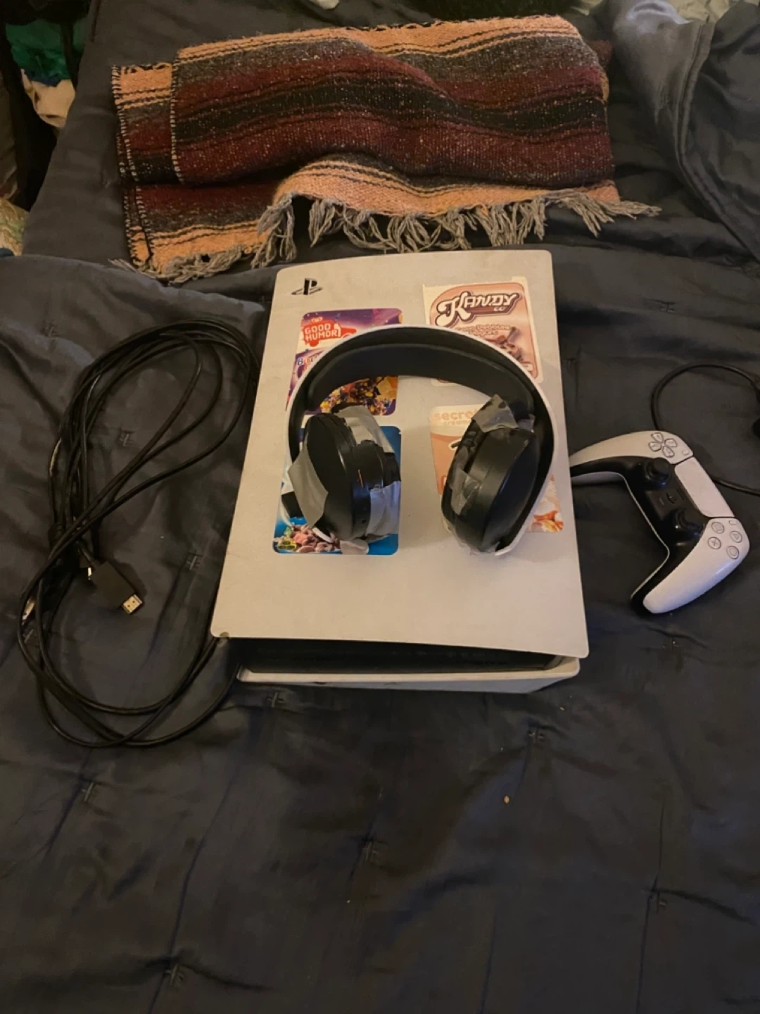 Selling a PlayStation 5 console with a controller! It comes with a power cable. The console has some stickers on it.
