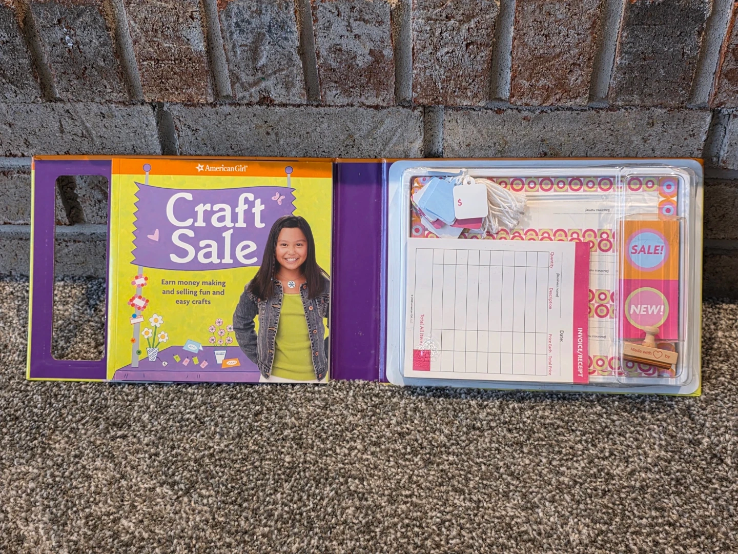 Selling an American Girl Craft Sale set. It includes craft ideas, price tags, stickers, and more! It's a fun way to earn money making and selling fun and easy crafts. Recommended for ages 8+