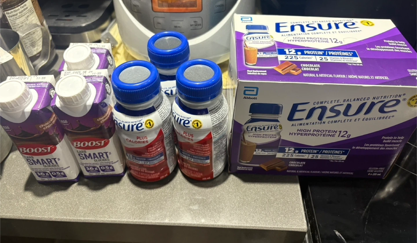I have a mix of Ensure and Boost nutritional drinks available.