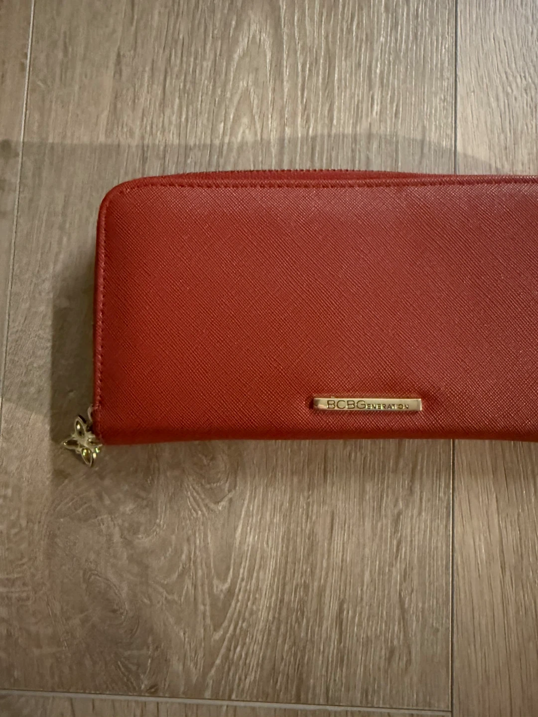 Selling a BCBG Generation wallet in a great colour! It's a stylish and practical accessory to keep your essentials organized. The wallet features a zip-around closure and plenty of compartments inside. Used only a few times selling since im a student.