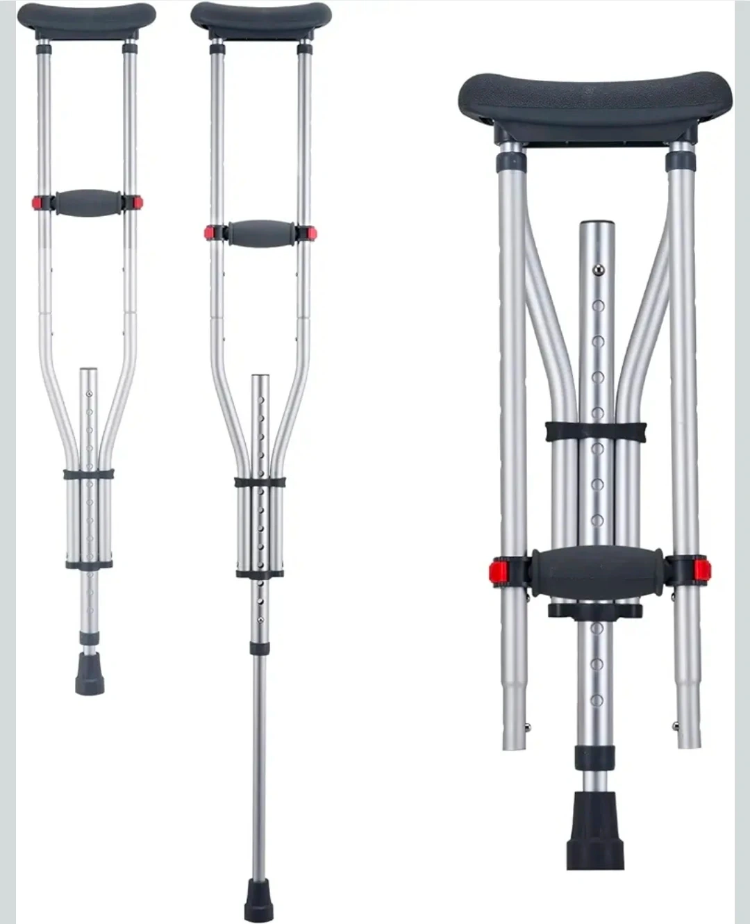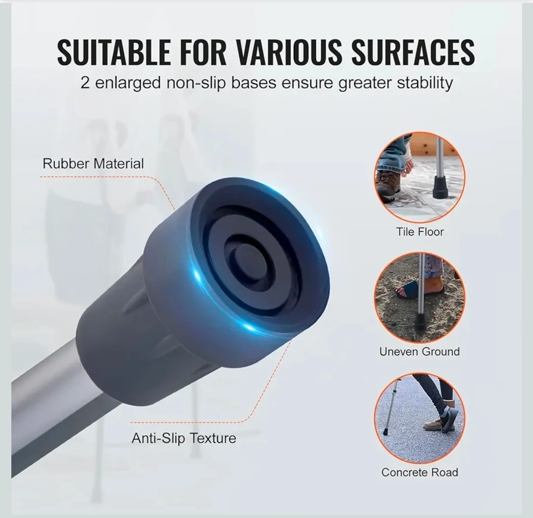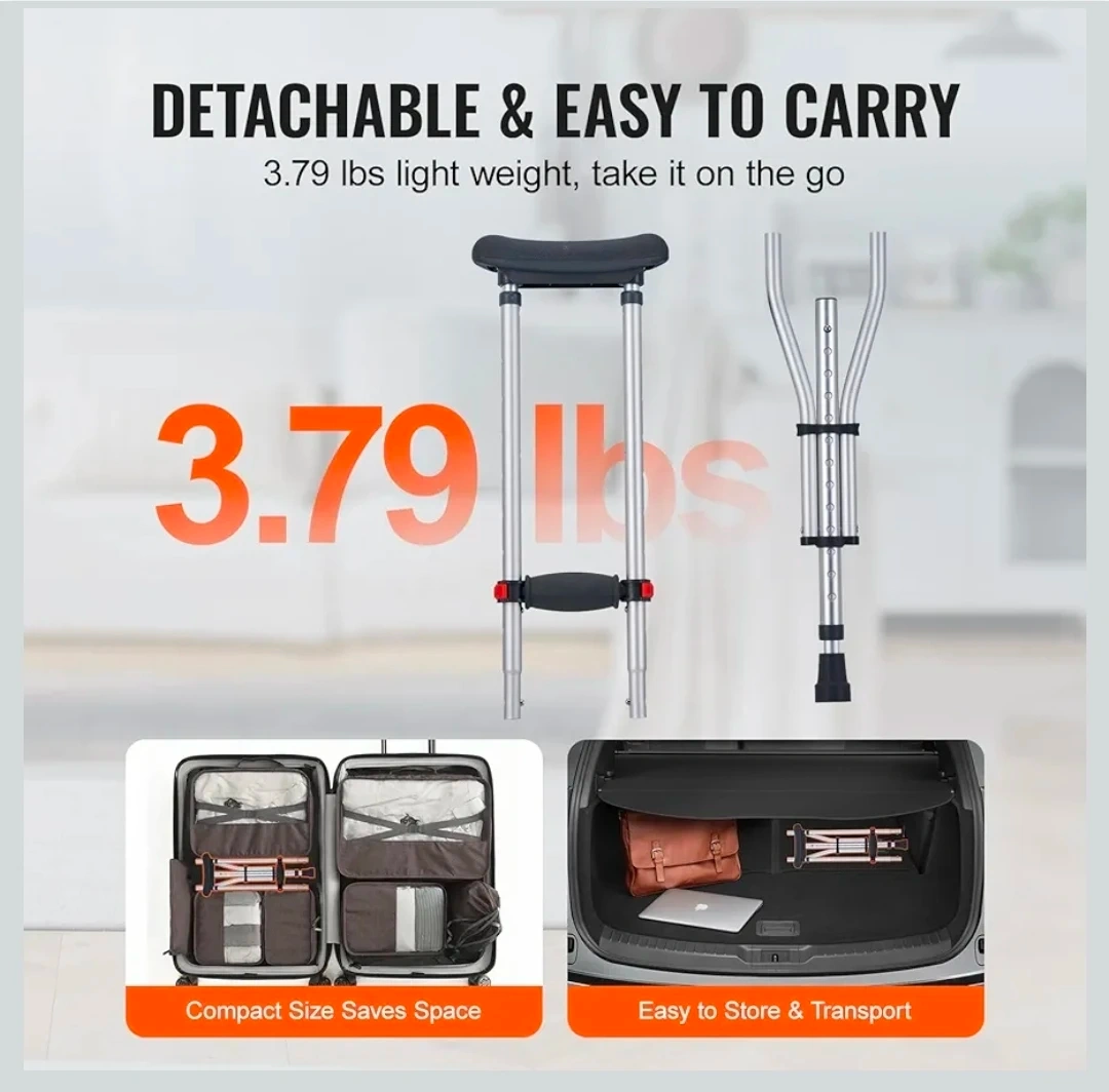 These Vevor crutches are lightweight and easy to carry around. They feature 13-level height adjustment, suitable for heights from 47.24" to 78.74". The reinforced aluminum tube and inner arc design enhance structural stability, supporting up to 300lbs. The enlarged non-slip bases ensure greater stability on various surfaces