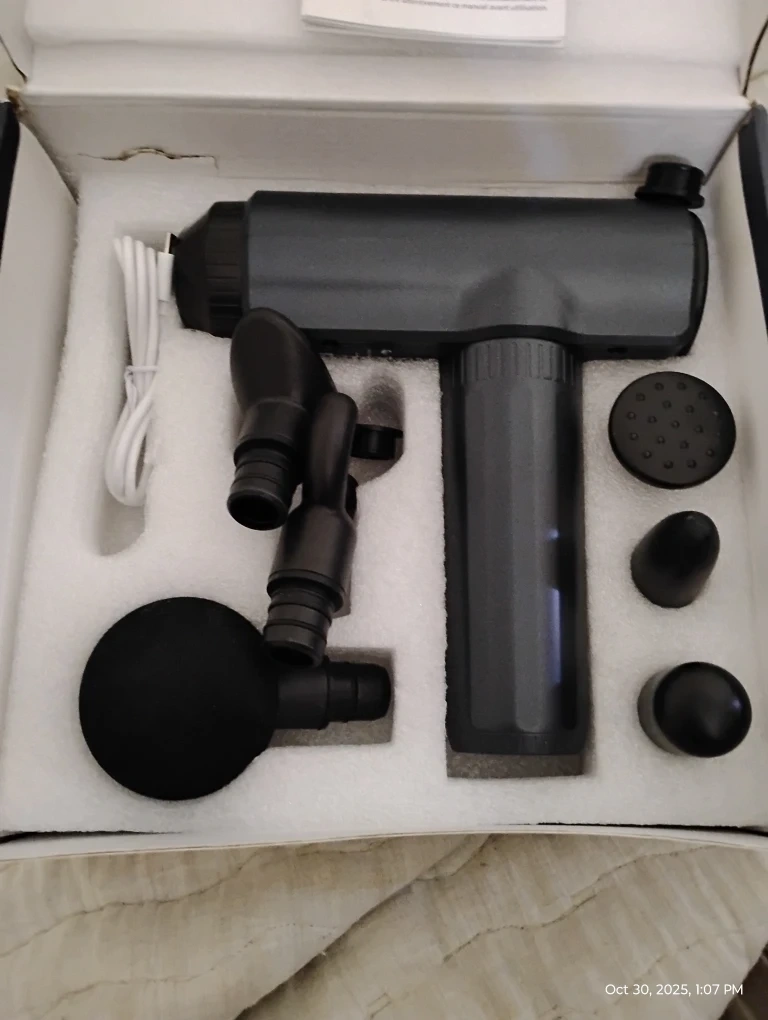 I'm selling a Lefity deep muscle massage gun! It comes with multiple attachments to help you target different muscle groups. The massage gun is in excellent condition and includes the original box and all components. Perfect for post-workout recovery or just relaxing those tense muscles