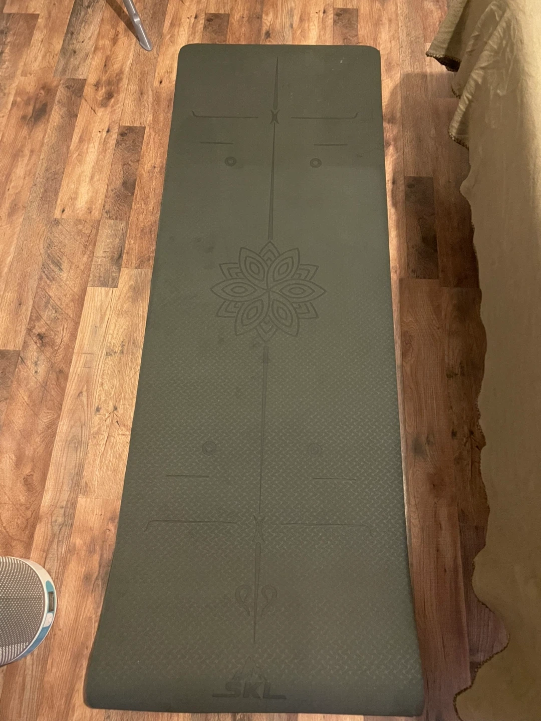 Selling a yoga mat, perfect for your workout routine! It's in great condition and ready for its next owner. It's lightweight and portable so you can take it anywhere