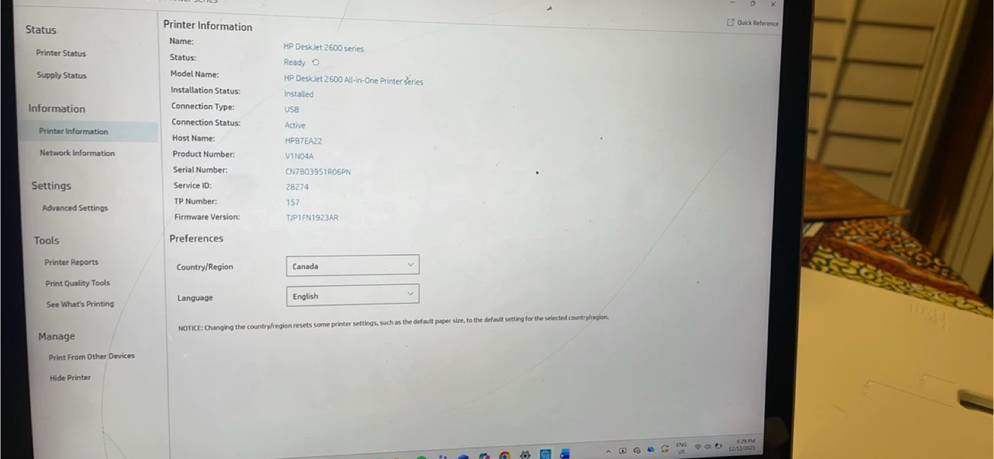 Selling an HP DeskJet 2600 series all-in-one printer. It connects via USB or wifi