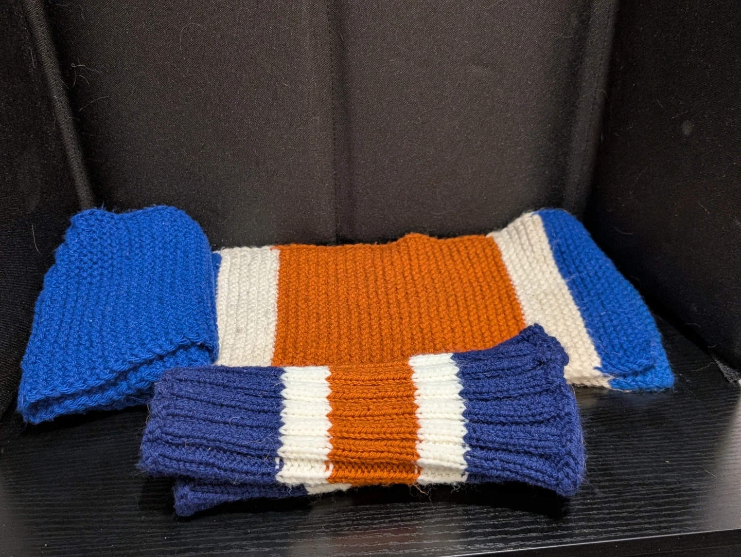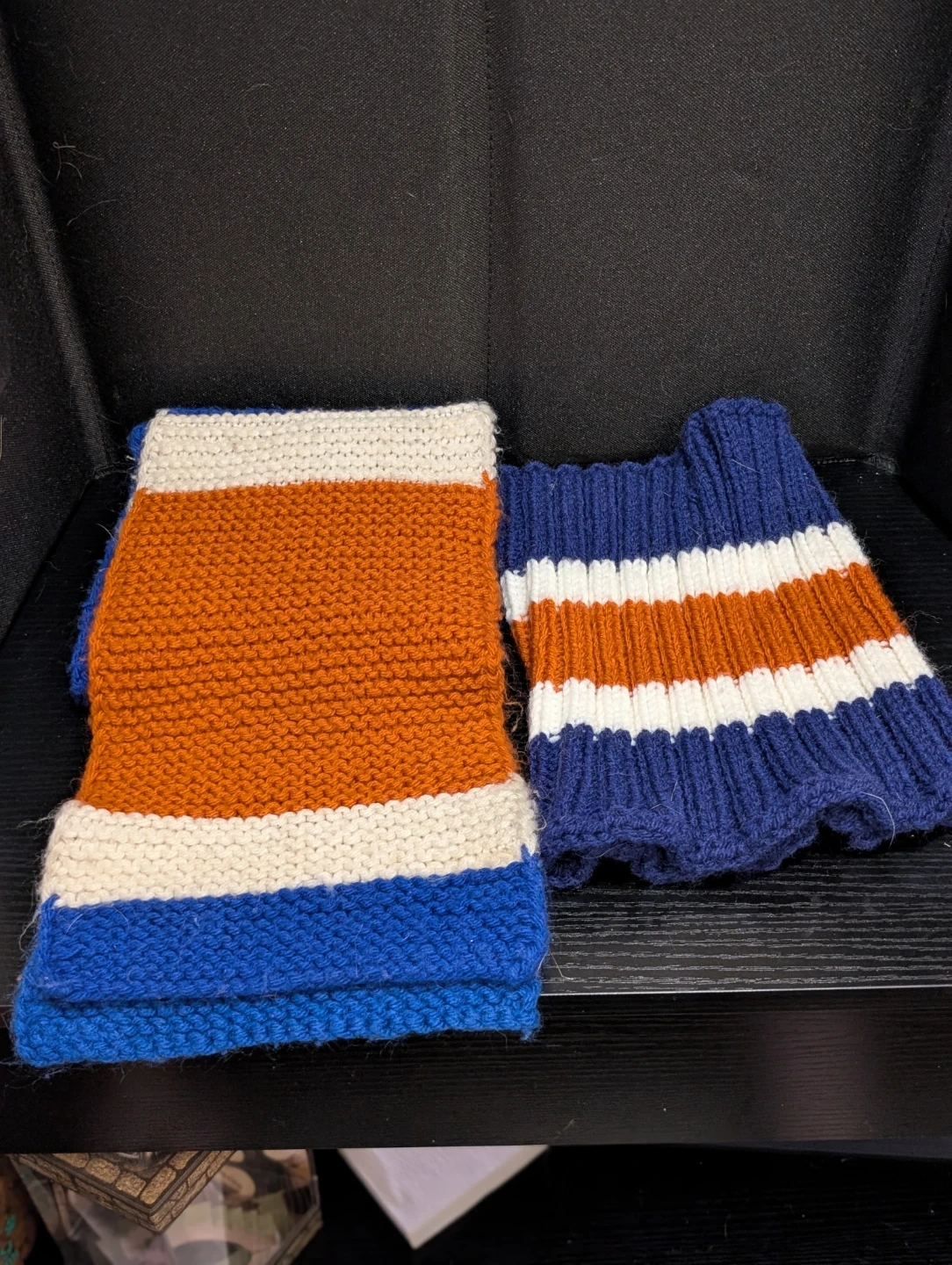 Oilers color Hand Knitted Scarf & Wrist Warmers Set