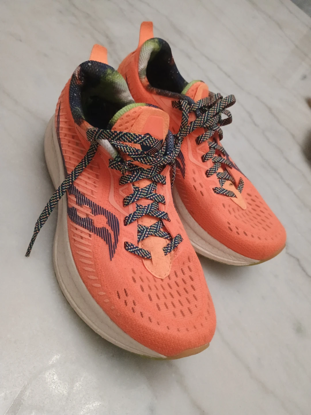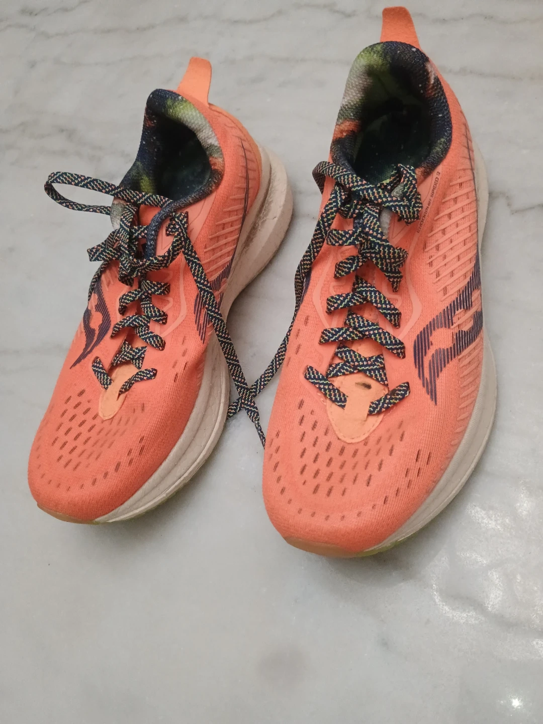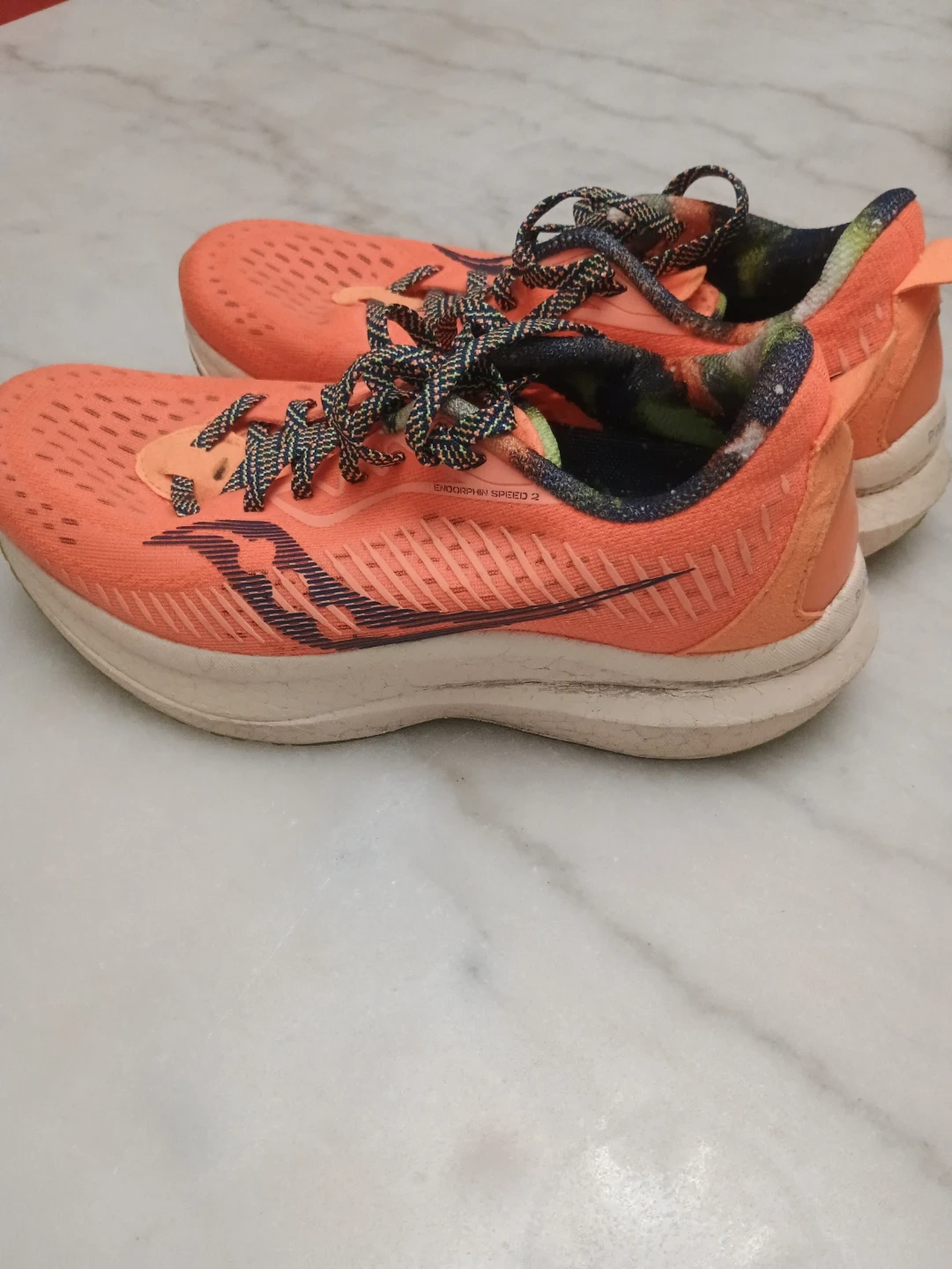 Selling a pair of Saucony Kinvara Speed 3 running shoes in orange. They feature PWRRUN PB cushioning for a responsive and comfortable ride. These shoes are lightweight and designed for speed, making them great for training or racing. Please note some signs of wear.