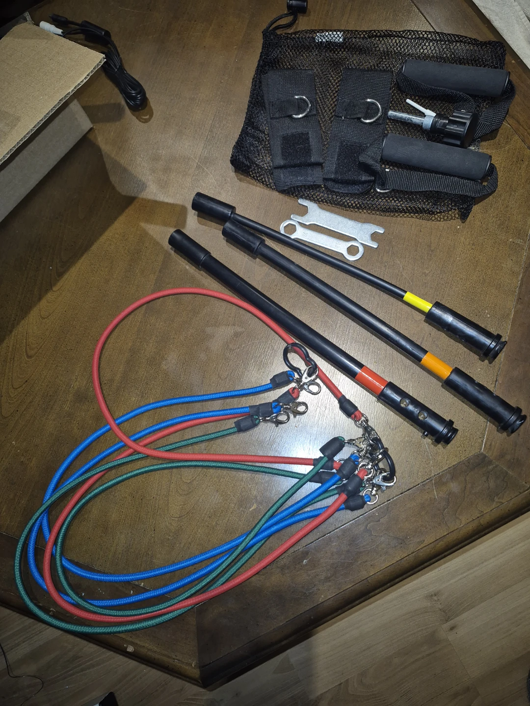 Selling a Bally Total Fitness resistance band set! It comes with a variety of resistance bands, handles, and a carrying bag. Great for at-home workouts or taking to the gym
