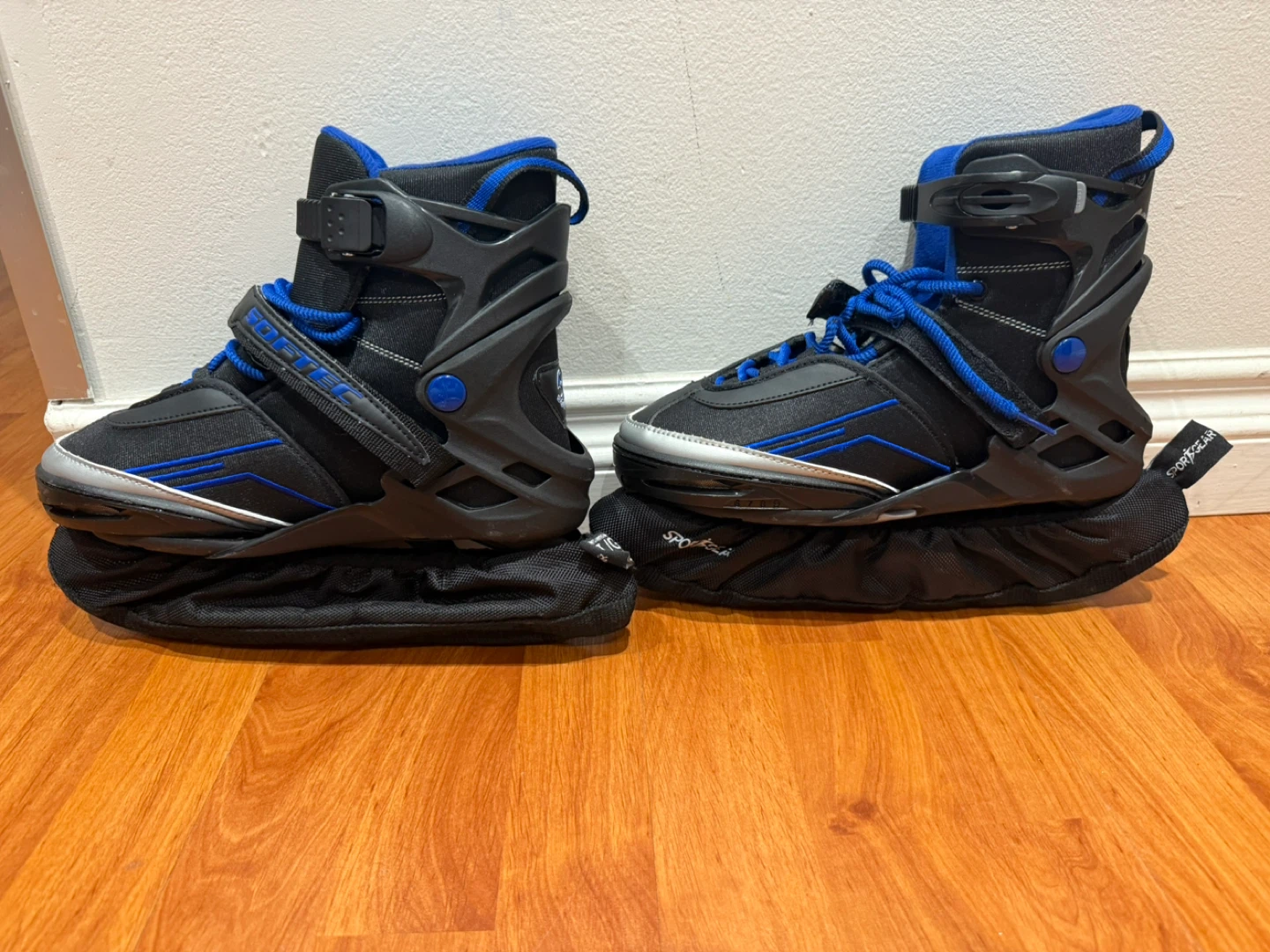 Selling a pair of SportGear adjustable ice skates in black and blue! They're adjustable from size 6 to 9, so they're great for growing feet. Comes with skate guards.