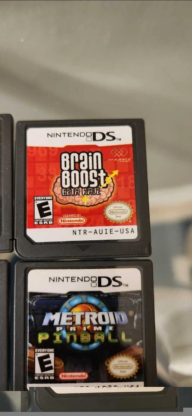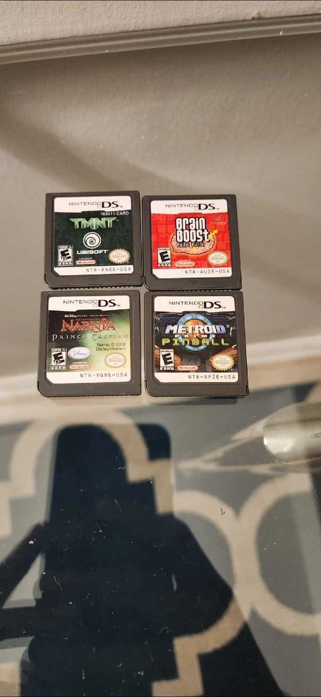 Selling some old stuff I don't need anymore. All in great condition: Metroid Prime Pinball, TMNT, Narnia, Brain Boost. Asking $75 for all 4 games.