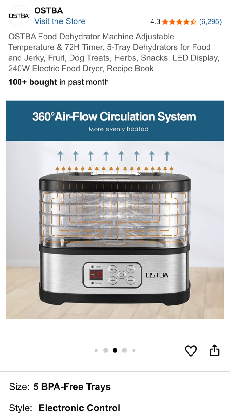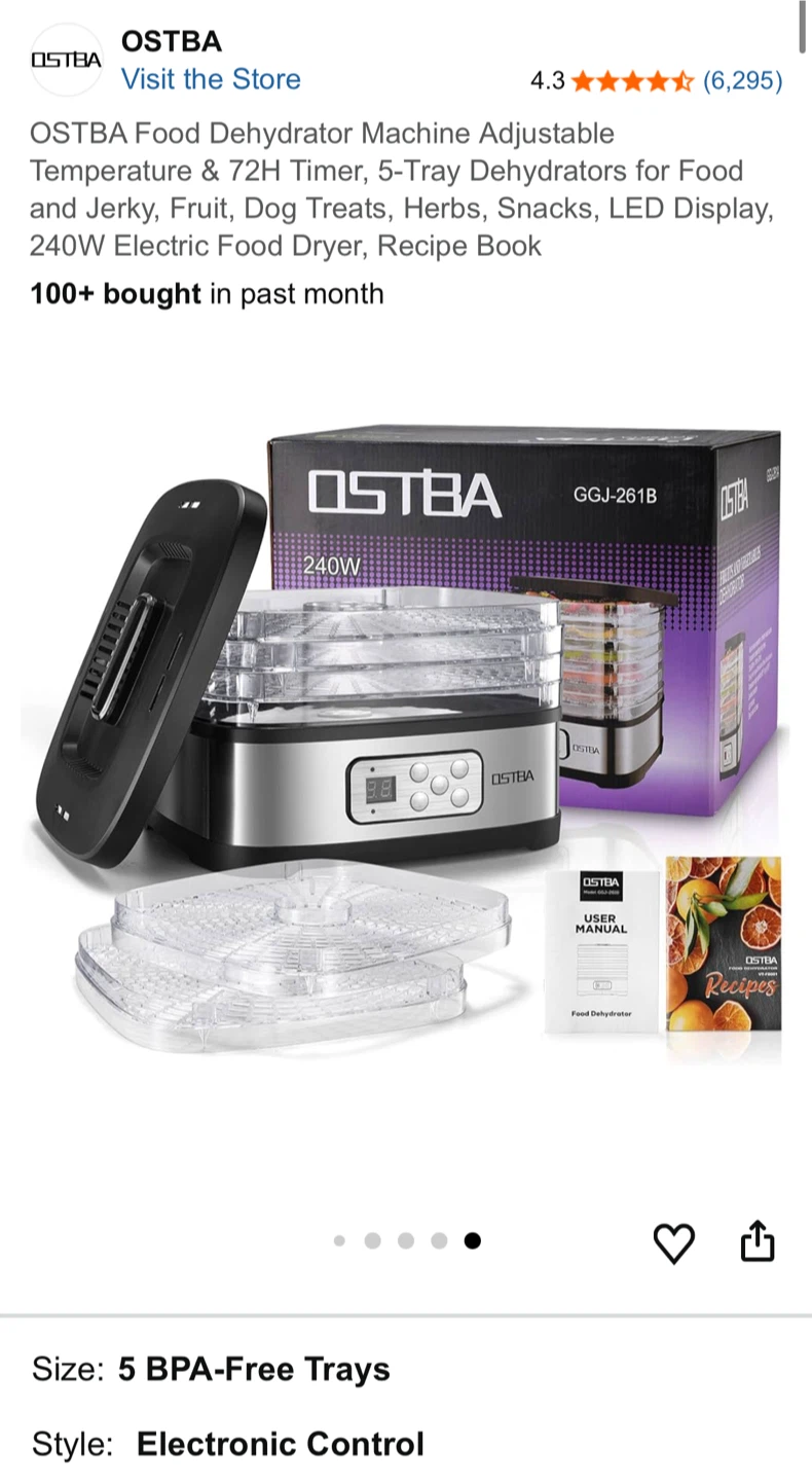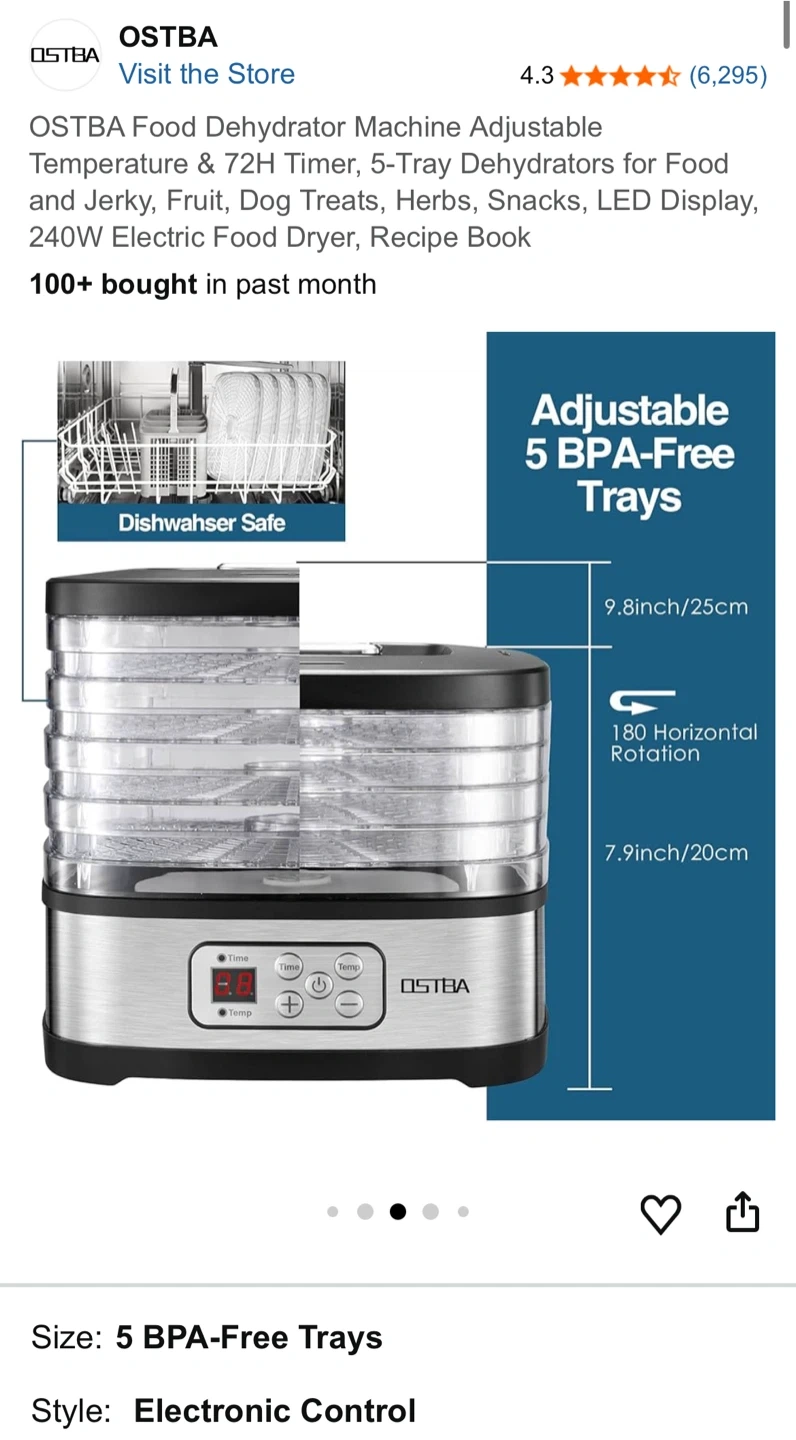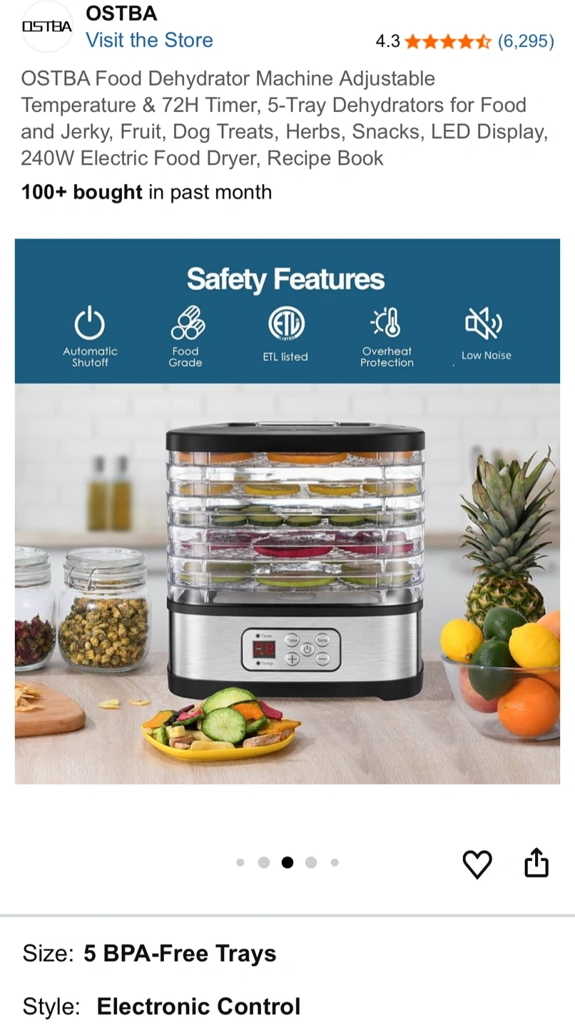 OSTBA Food Dehydrator Machine, 5-Tray