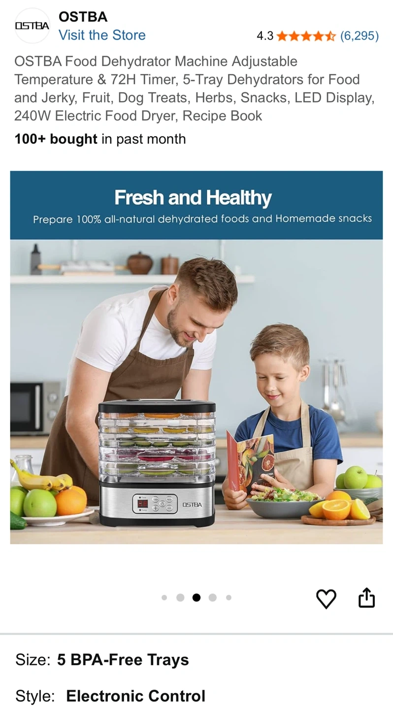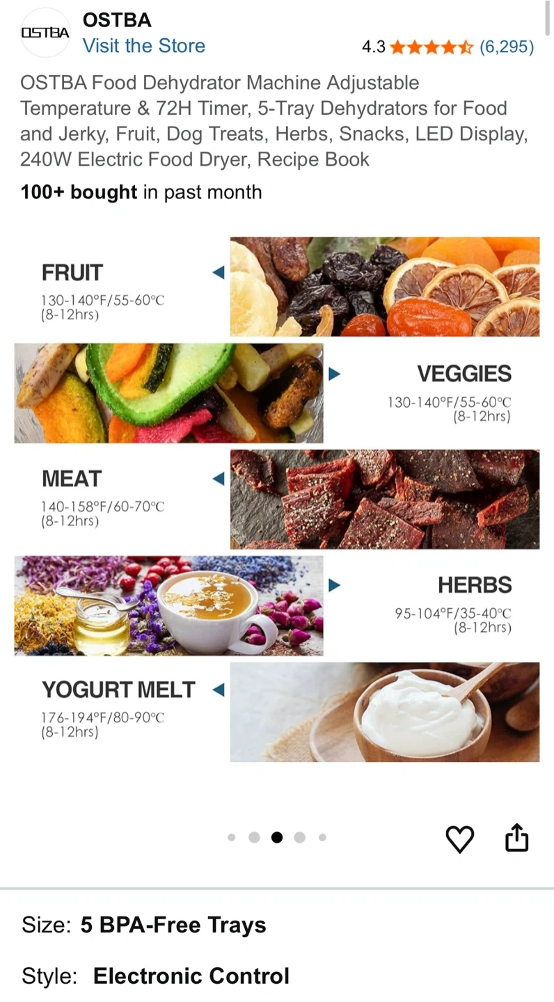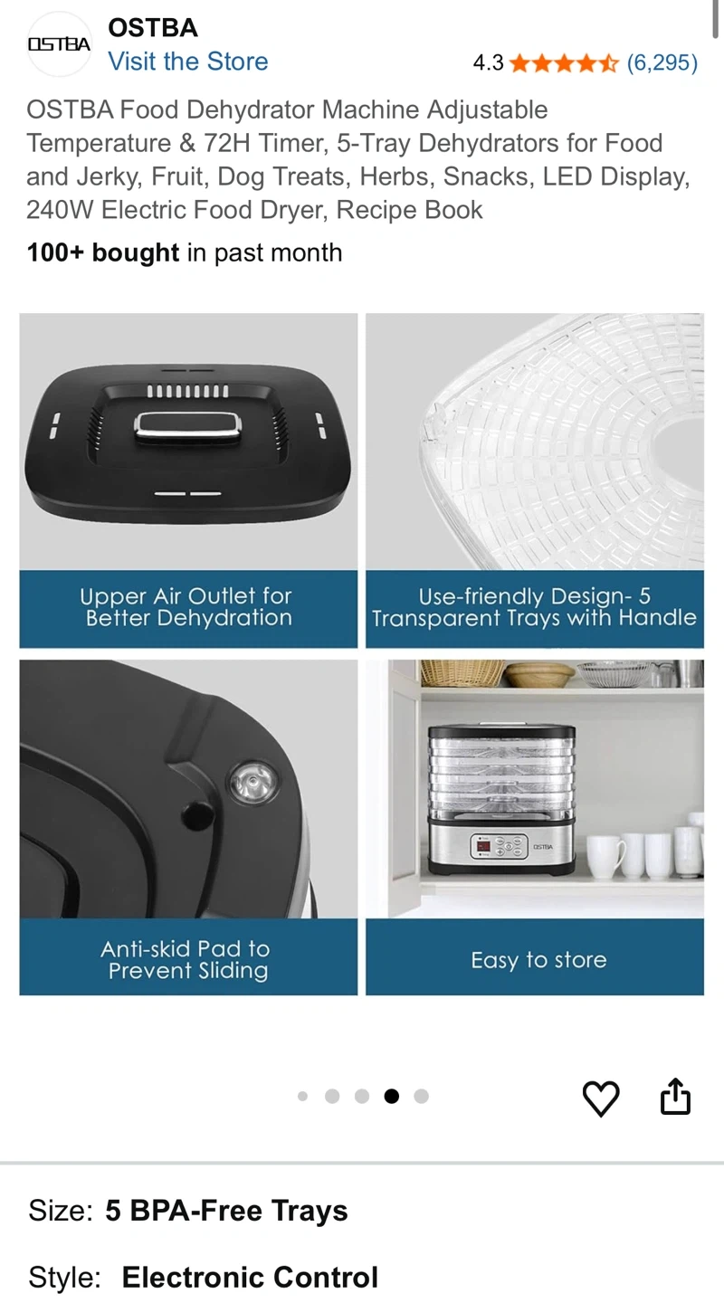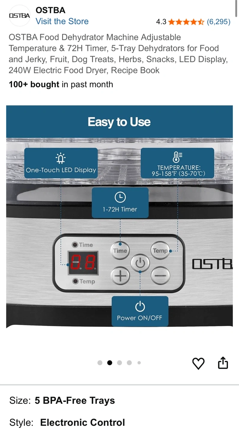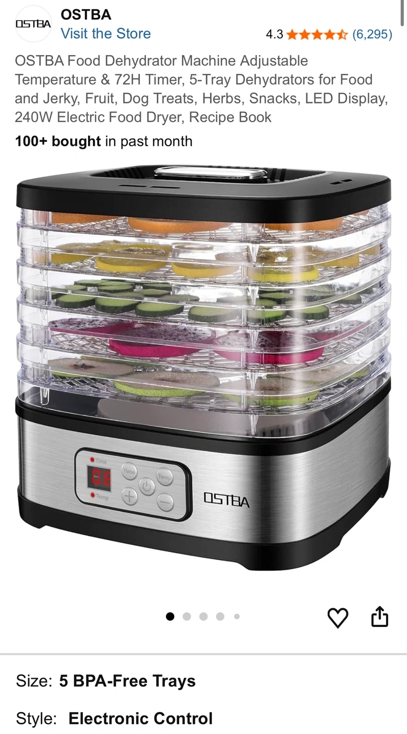 OSTBA Food Dehydrator Machine, 5-Tray