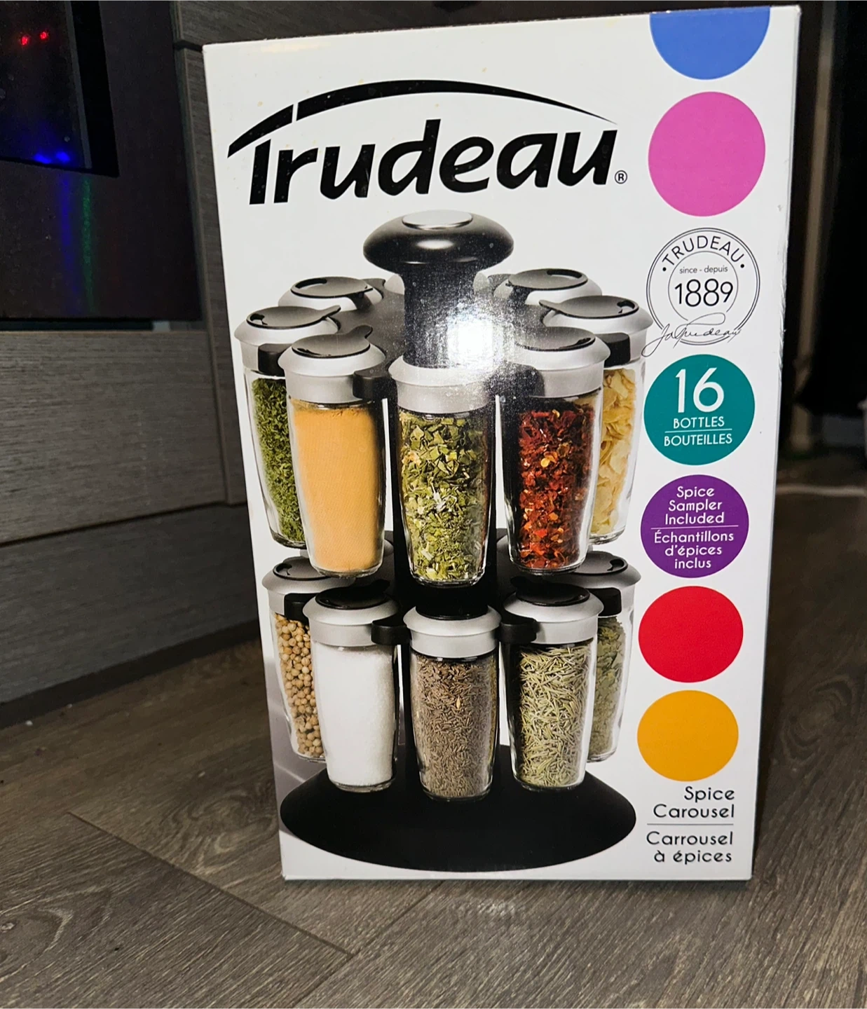 Selling a Brand new Trudeau Spice Carousel that comes with 16 bottles! It's a great way to organize your spices and keep them within easy reach. Spice sampler included. Perfect for gifting this Christmas.
