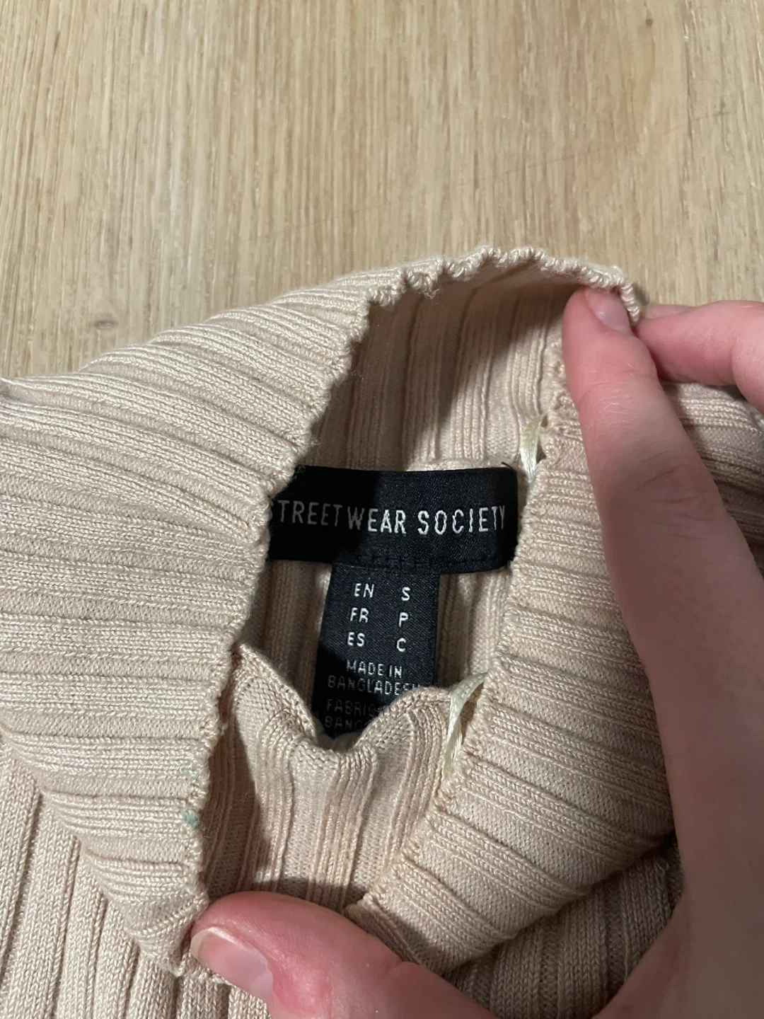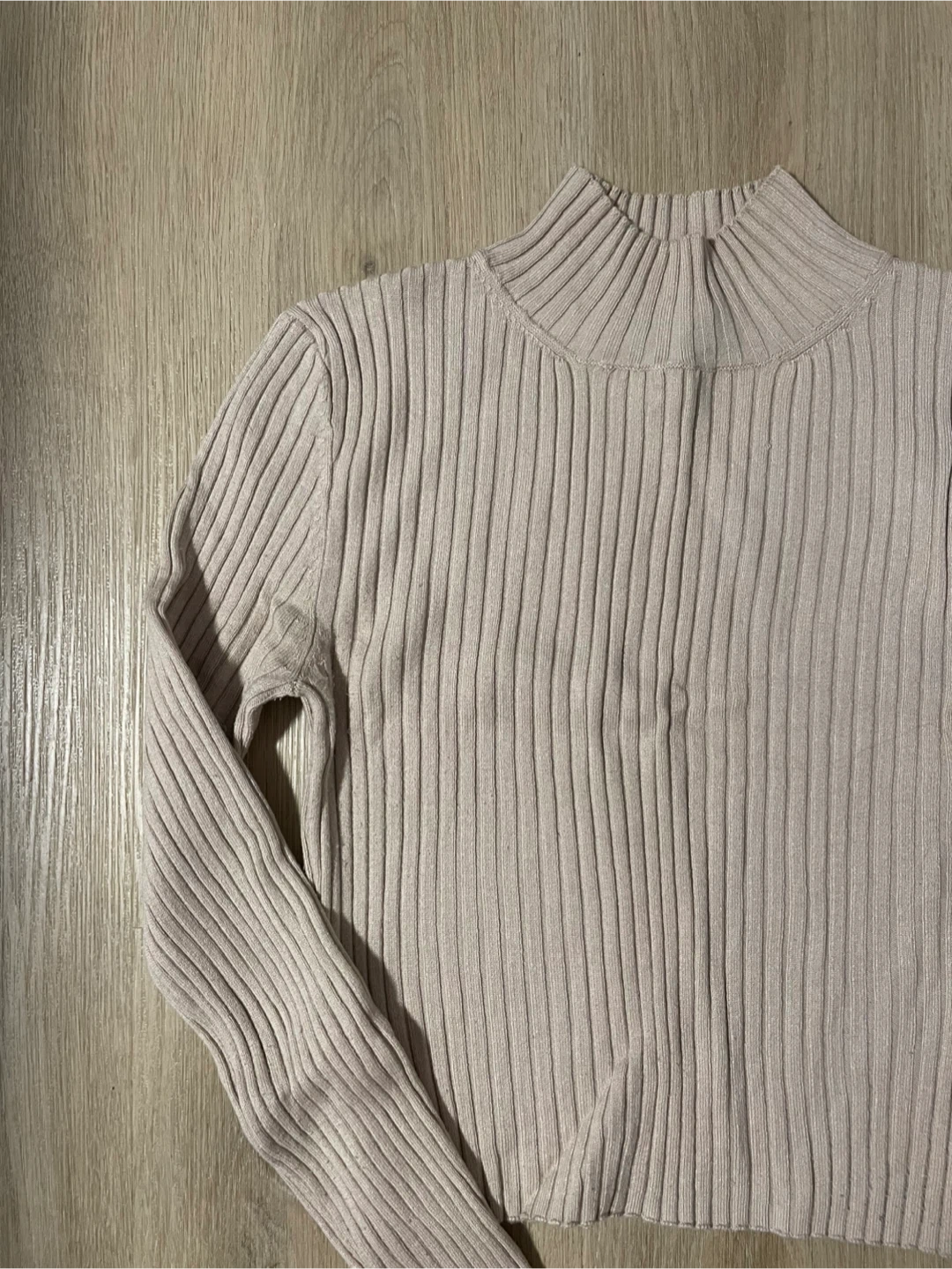 Tan coloured mockneck ribbed longsleeve top. A perfect basic for work or everyday. Haven’t worn it much so parting ways. Good condition, no damage.