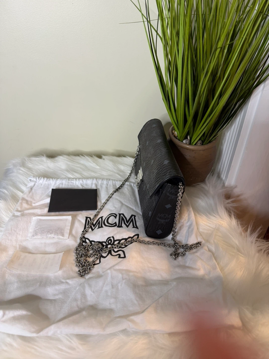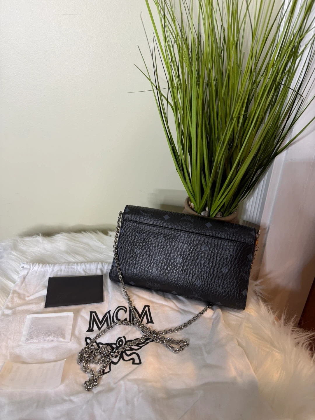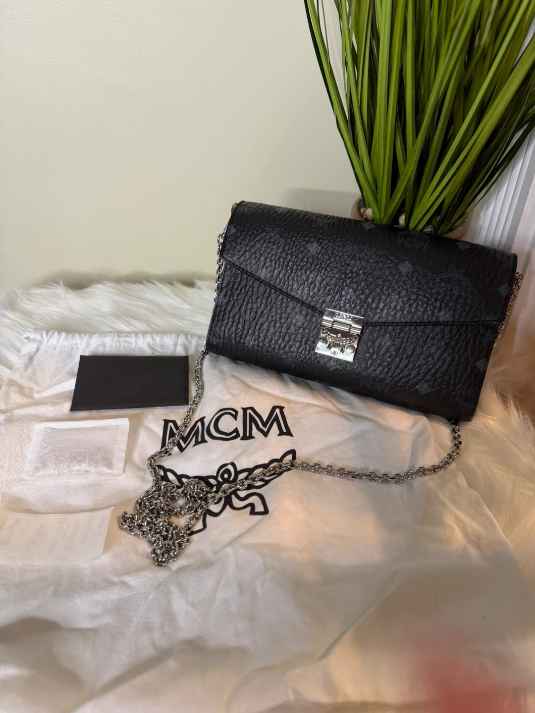 Selling a stylish MCM black leather chain wallet! This wallet is in great condition and comes with its original dust bag. Perfect for keeping your essentials organized while adding a touch of luxury to your look
