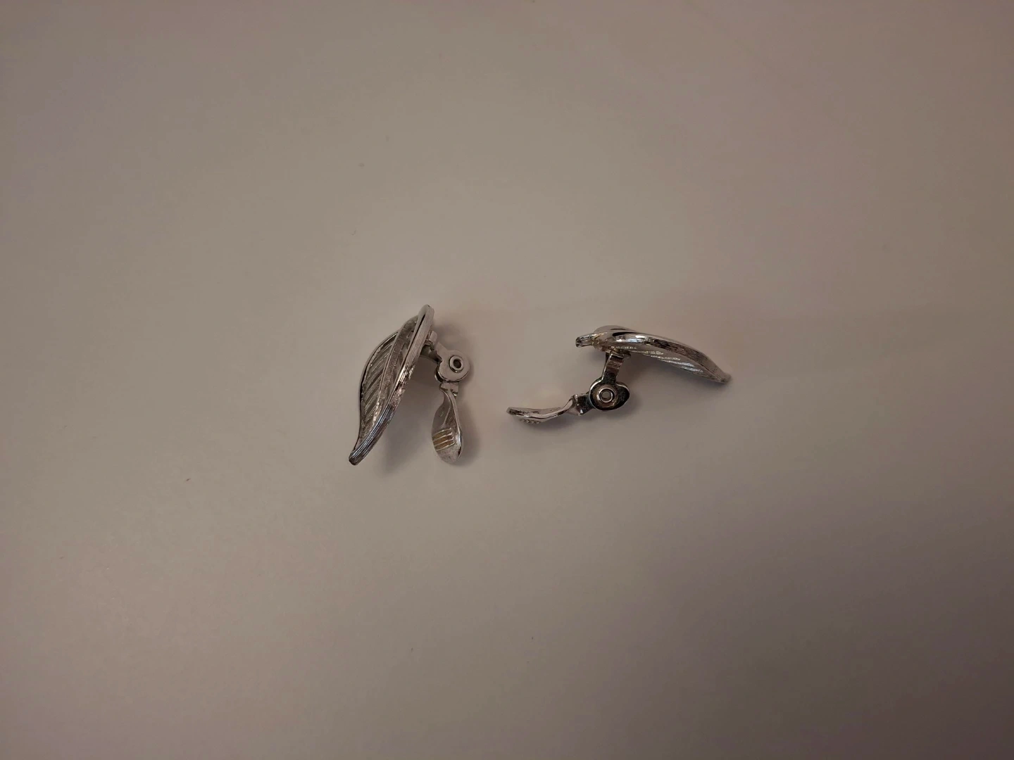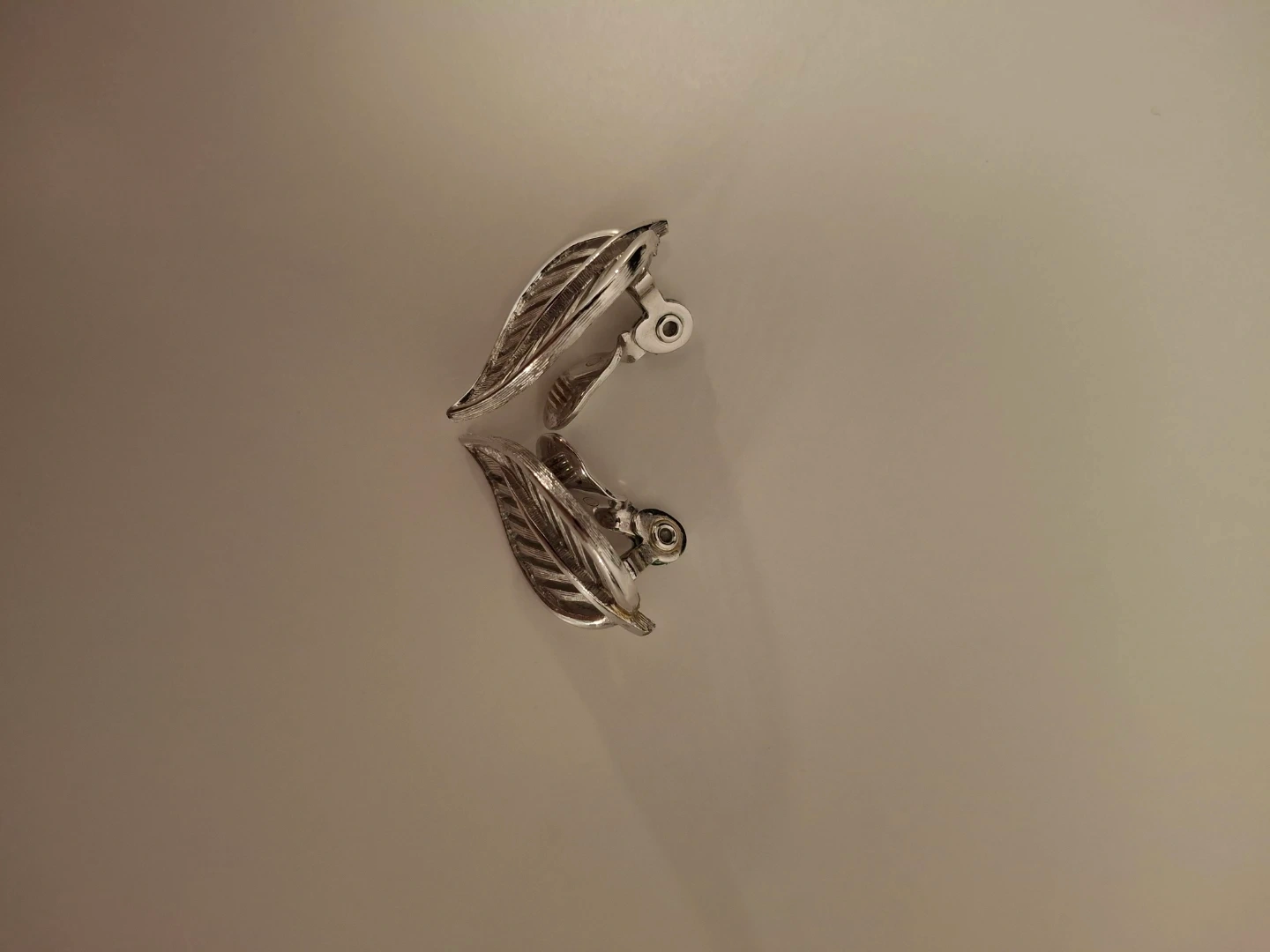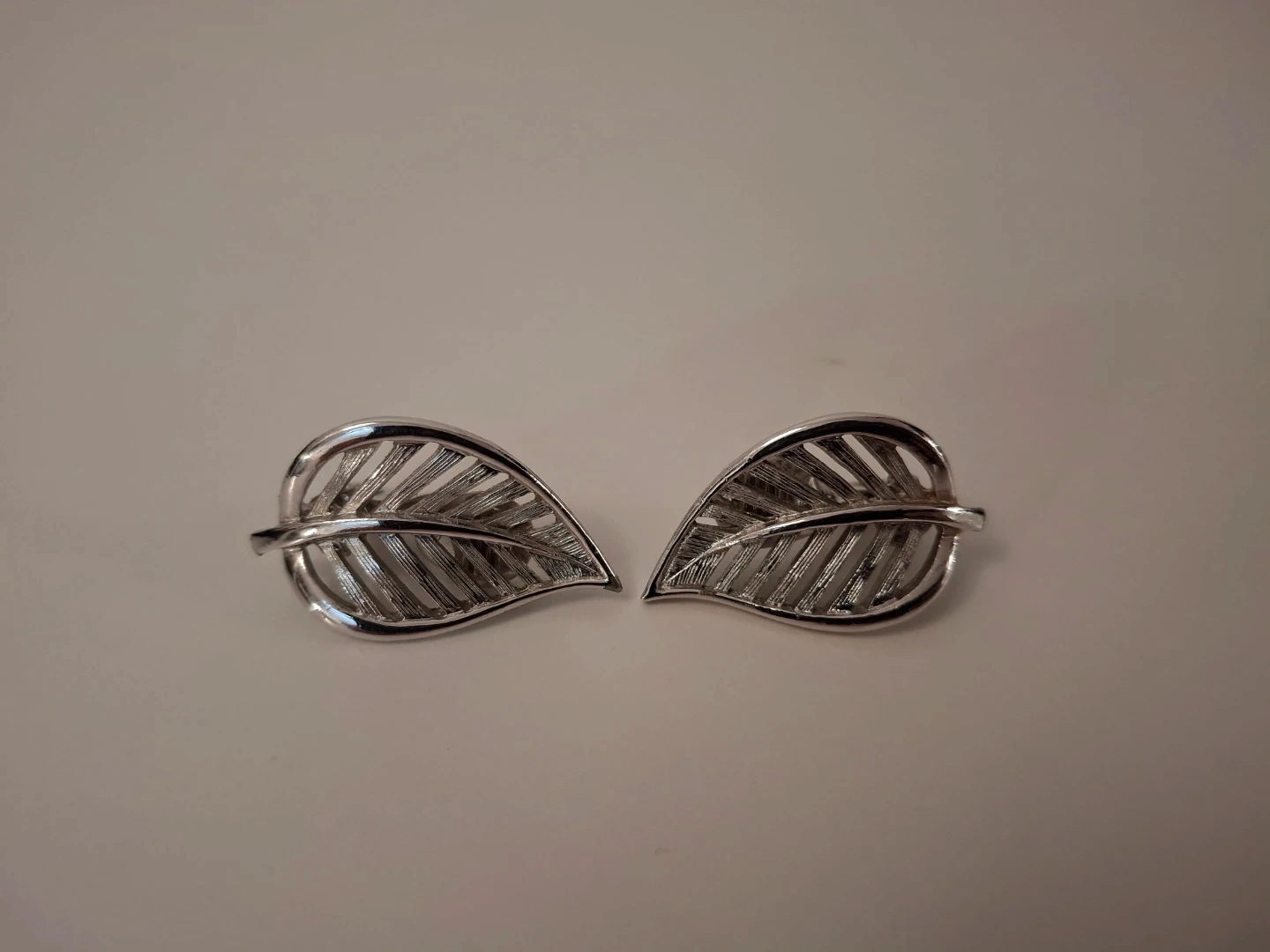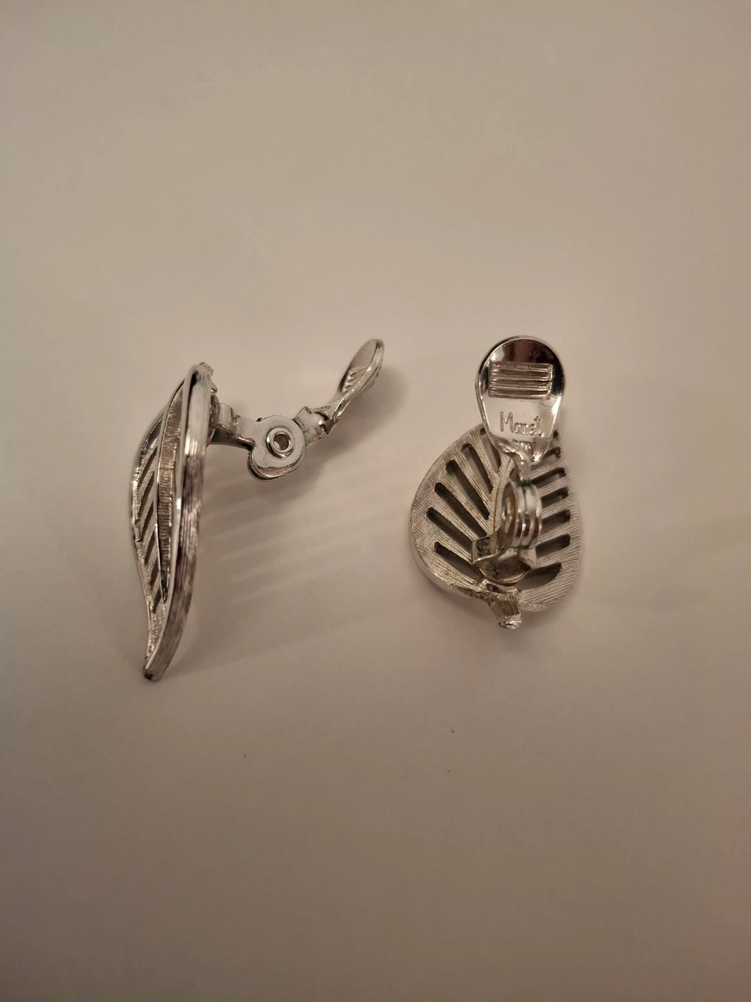 Pair of Monet PAYD signed silver-tone leaf earrings. Great condition and have a classic, elegant look.