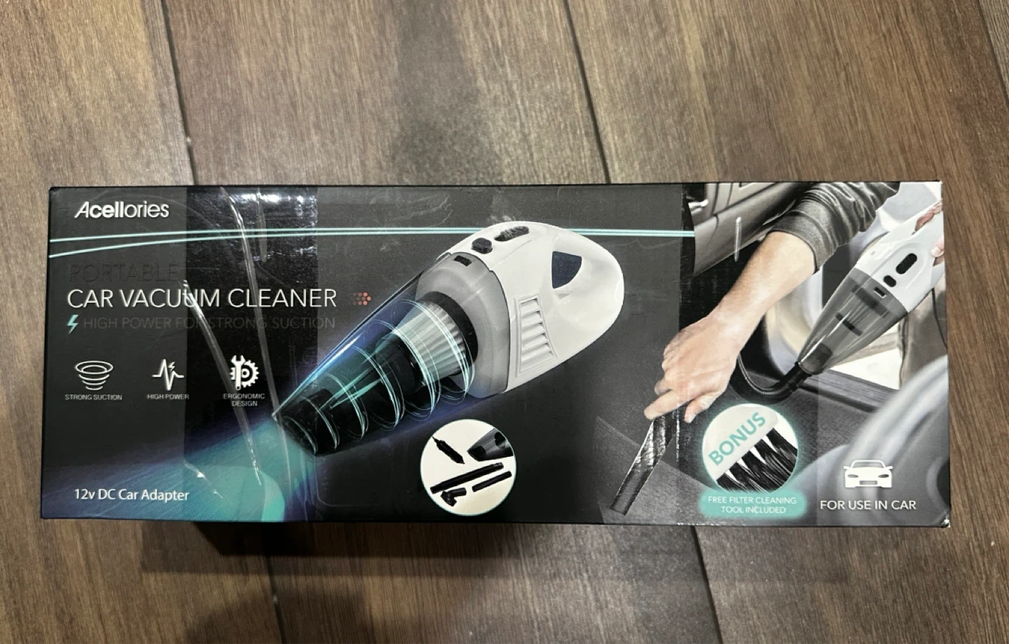 This is a brand new Portable Car Vacuum Cleaner! It features strong suction, high power, and an ergonomic design. It comes with a 12v DC car adapter and a bonus free filter cleaning tool. Perfect for keeping your car clean!