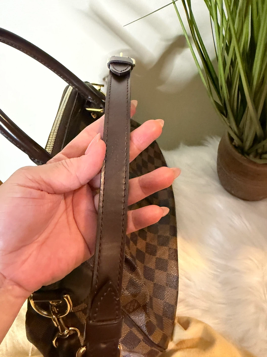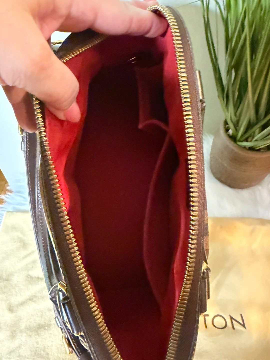 Selling a Louis Vuitton Damier Ebene Alma handbag. The classic checkered pattern and structured design make it a timeless piece! It's in great condition and comes with its original dust bag.