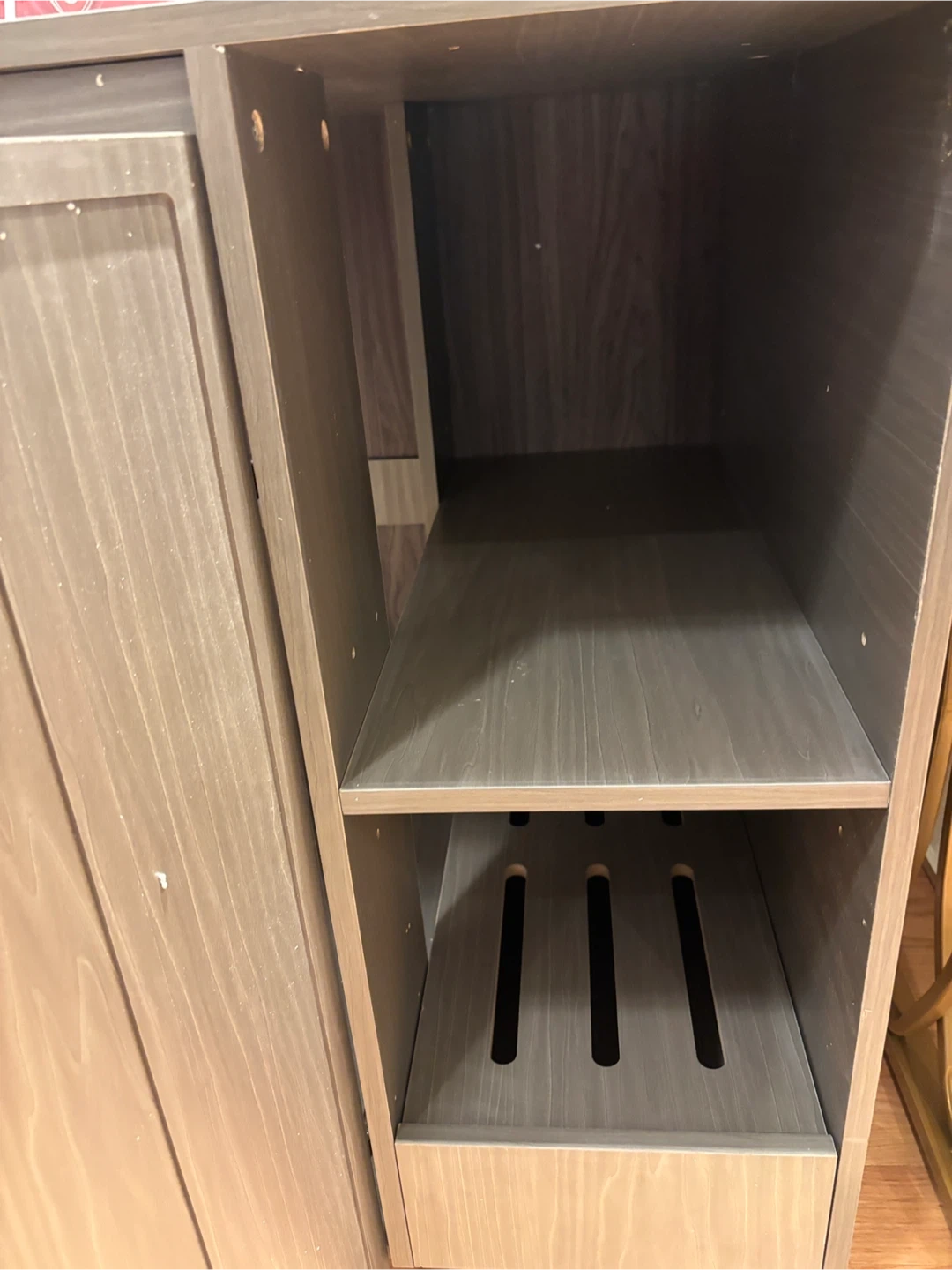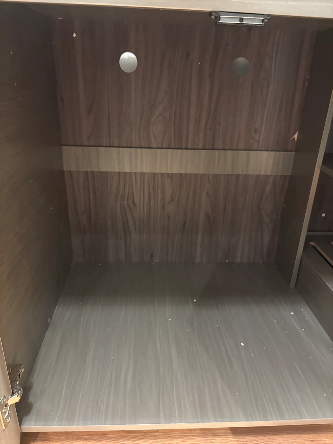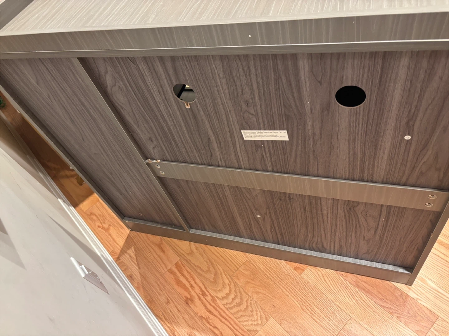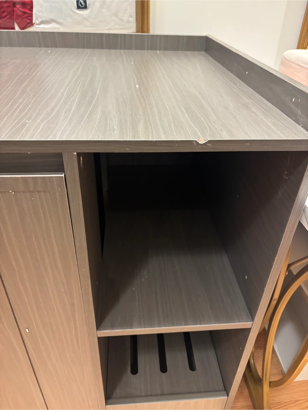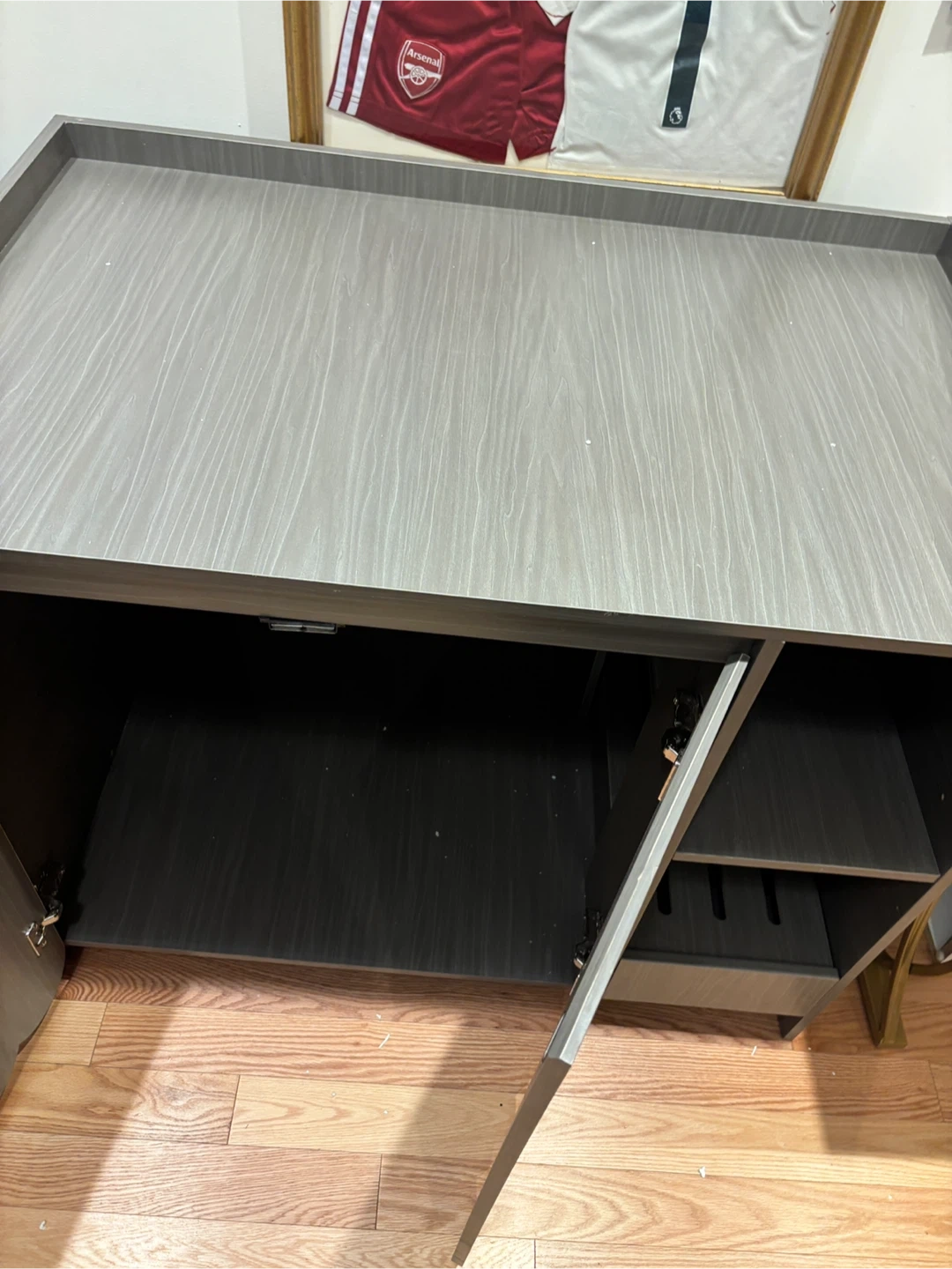 Selling a large cat litter box enclosure fThe dimensions are 41.34" x 35.04" x 25.59". It features a stylish grey wood finish and provides a discreet space for your cat's litter box. Available for pickup and delivery