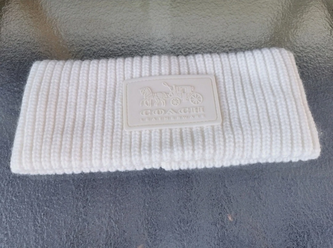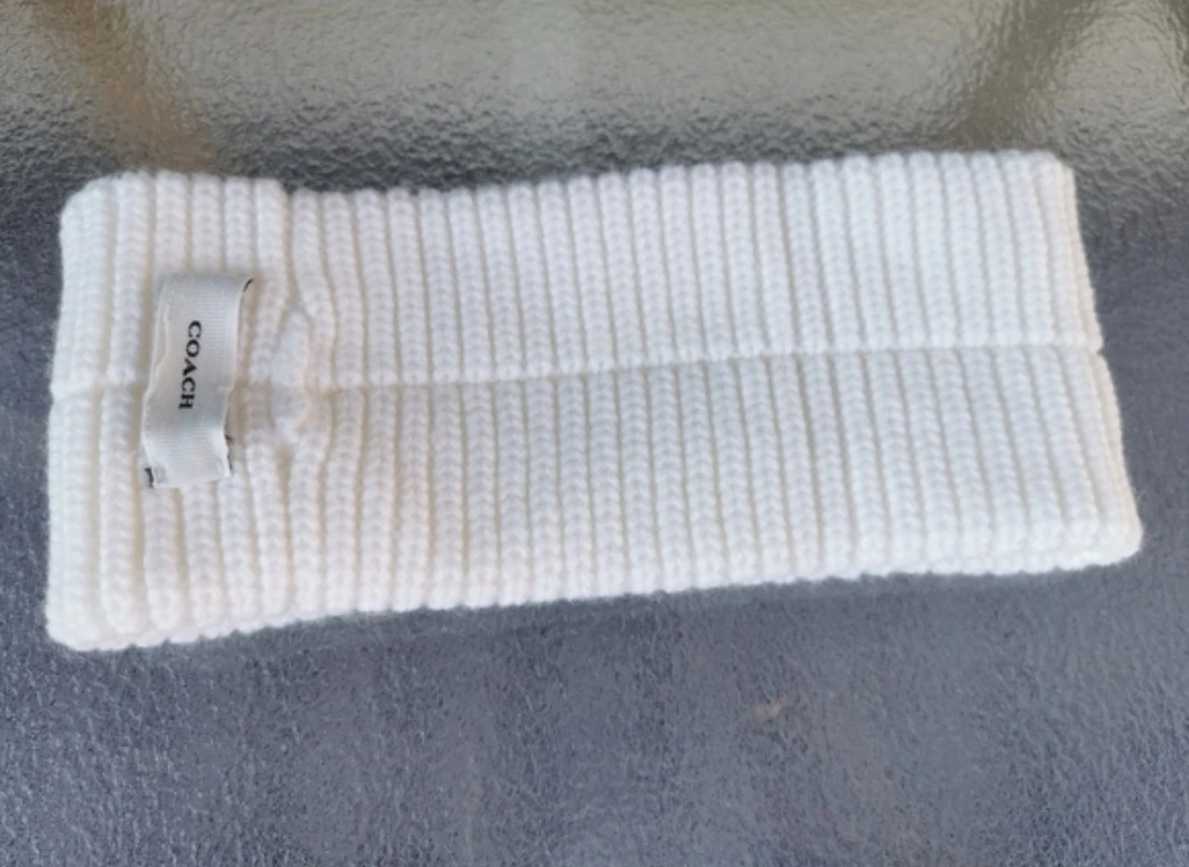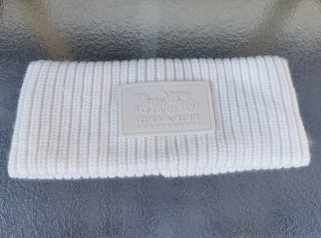 Coach Knit Headband With Rubber Patch. Super soft style is detailed with a rubber patch featuring iconic Coach logo.