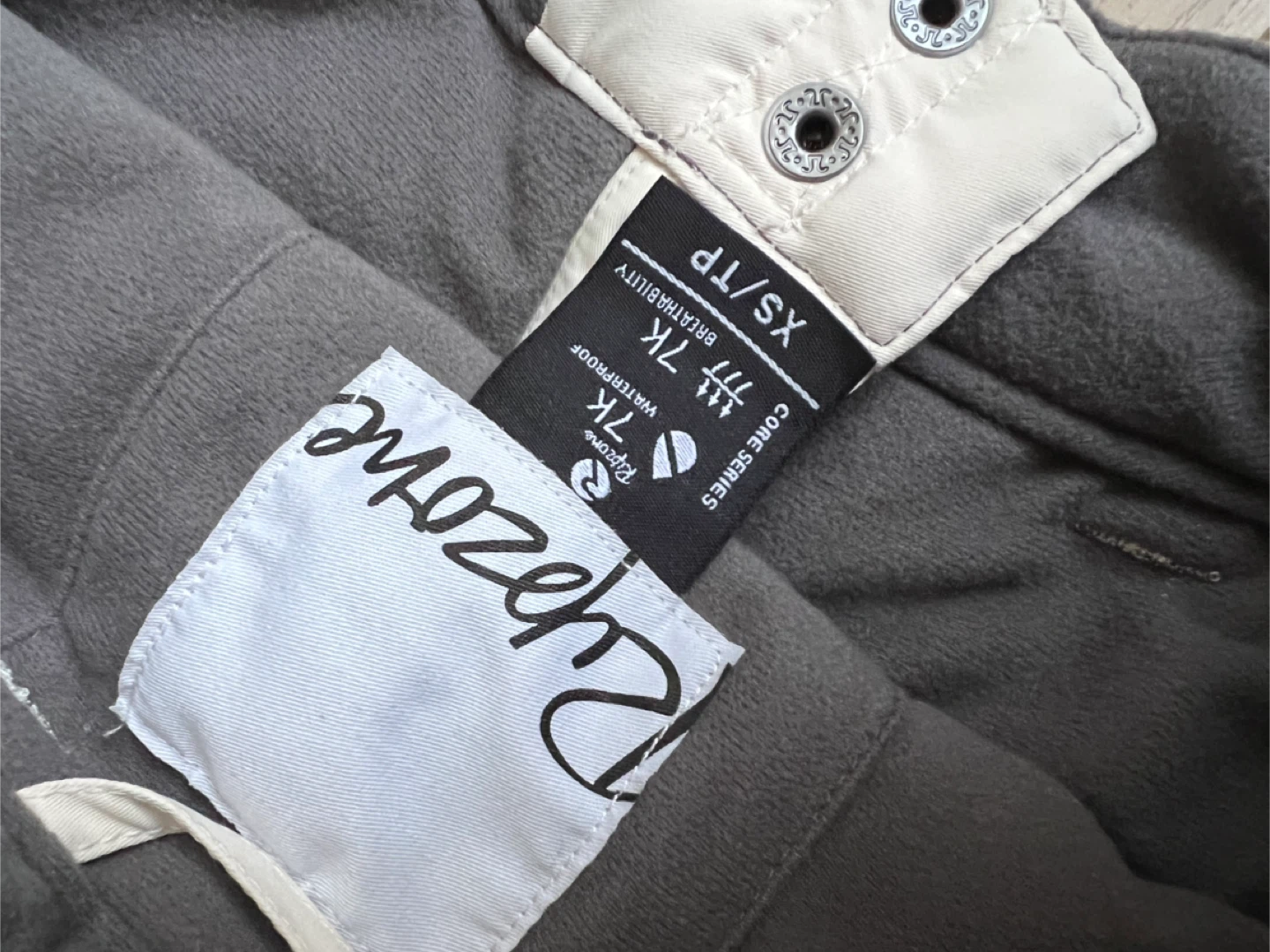 Selling a pair of Ripzone Core Series snow pants in size XS. These pants are waterproof and breathable with a rating of 7K/7K.