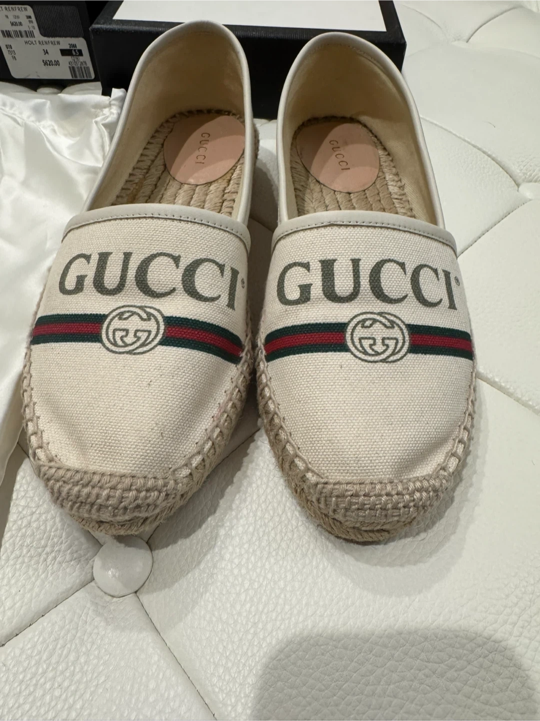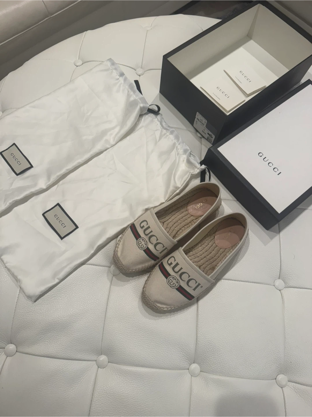 Selling a pair of Gucci espadrille flats in women’s size 6.5. They're in great condition and come with the original box and dust bags. These flats are perfect for adding a touch of luxury to your everyday look!