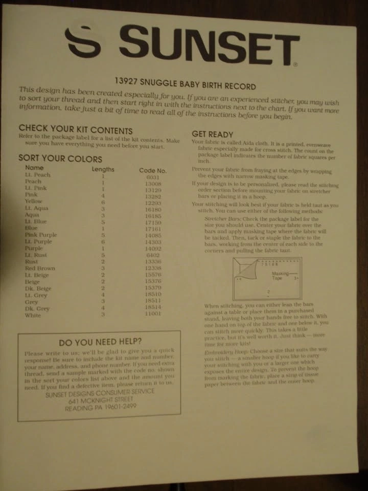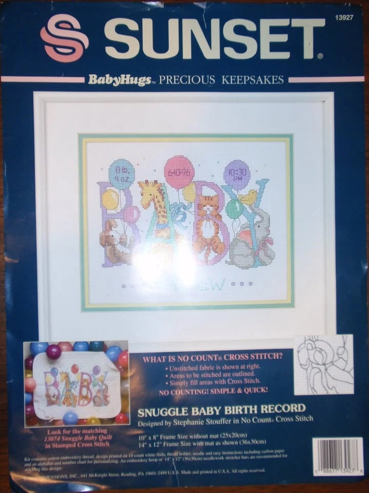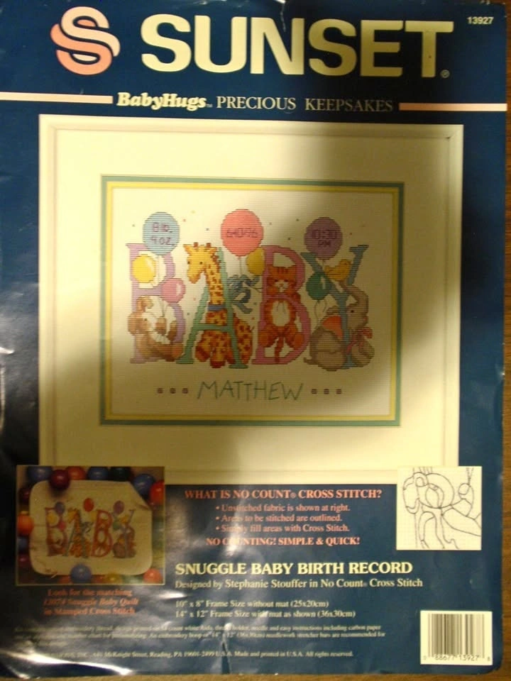 Cross Stitch Needlepoint - Birth Record Keepsake
