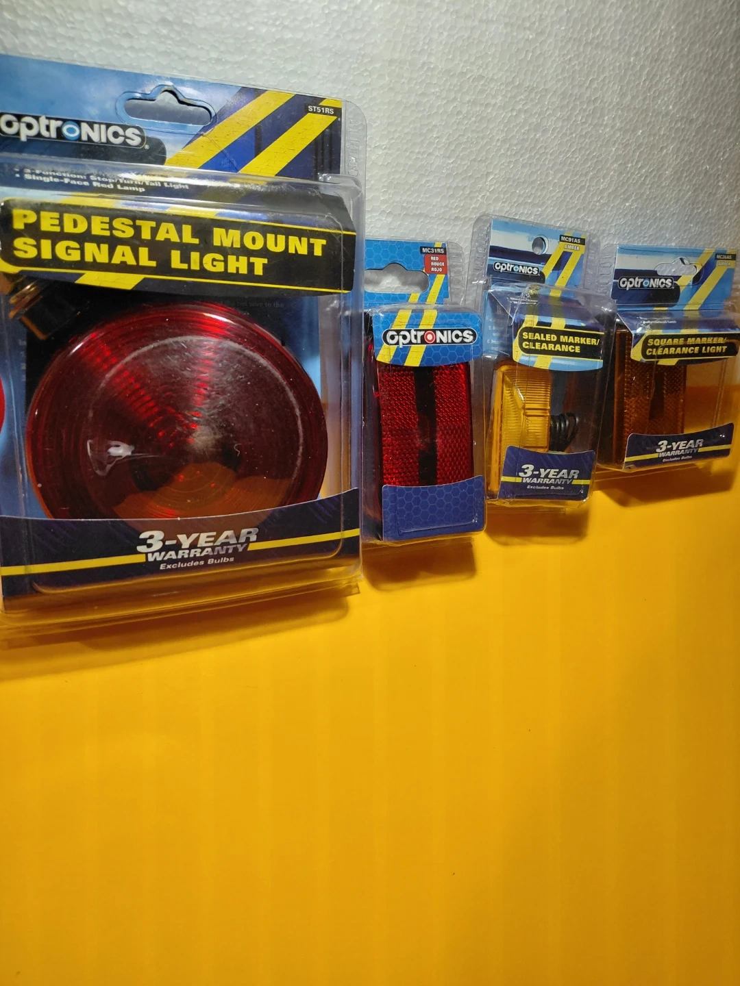 Selling a variety of Optronics lights! Included are the Pedestal Mount Signal Light, Sealed Marker/Clearance, and Square Marker/Clearance lights. All are new in their original packaging and come with a 3-year warranty (excludes bulbs). Perfect for your vehicle lighting needs!