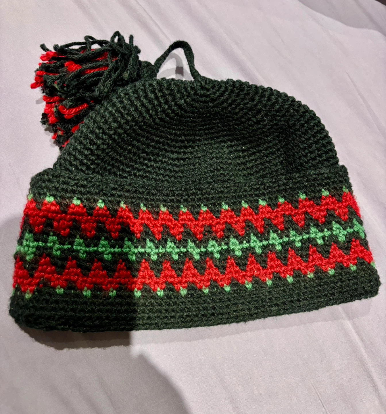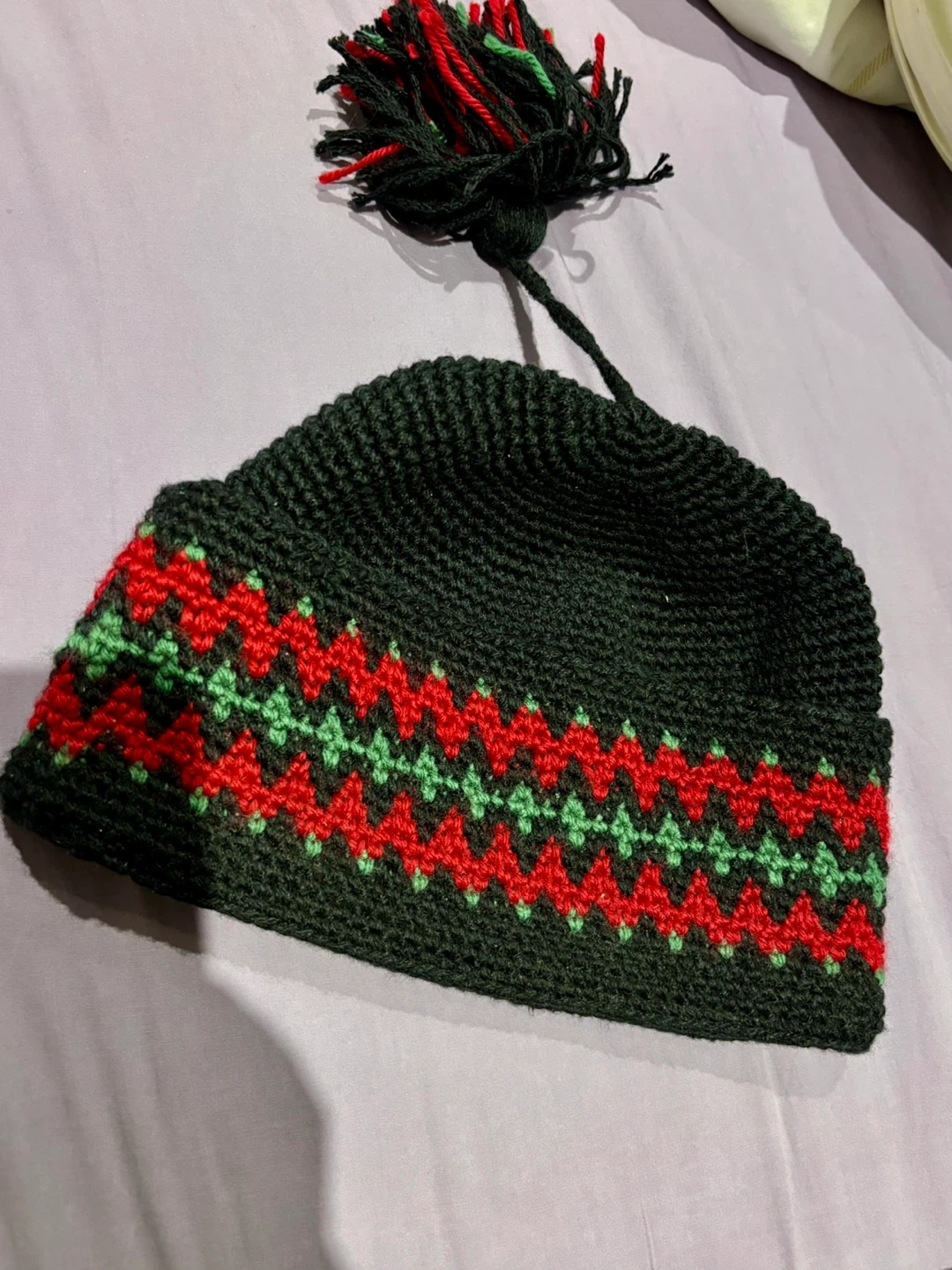 Handmade Knitted Beanie - Green, Red, Black