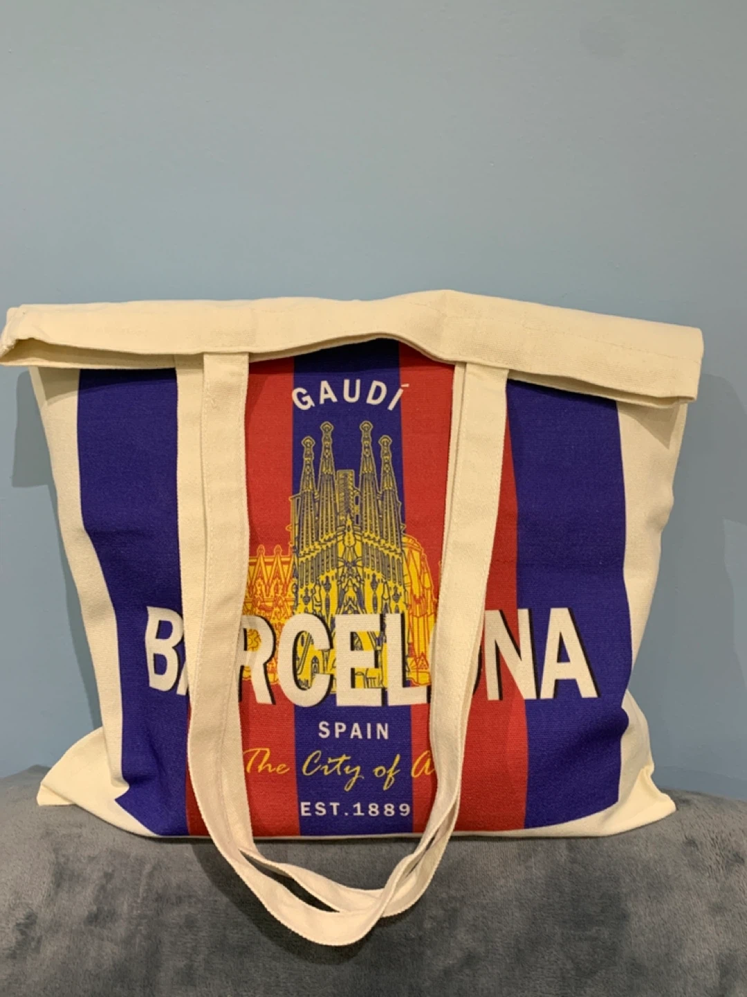 Barcelona Spain tote bag featuring Gaudi's architecture and the city's establishment year, 1889! Perfect for carrying your essentials while showing off your love for Barcelona