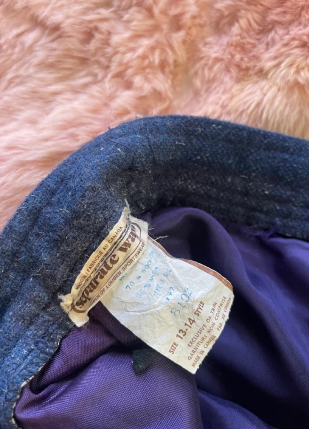 Very good vintage condition. Light natural lint visible due to wool fabric (normal for vintage wool). No major flaws noted.