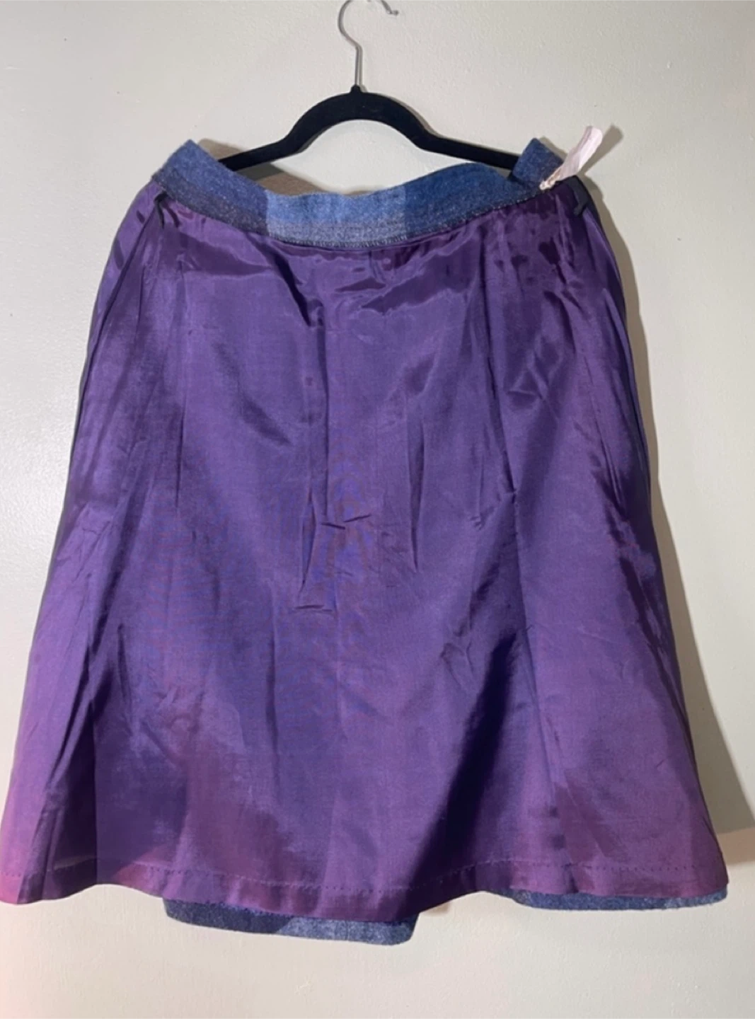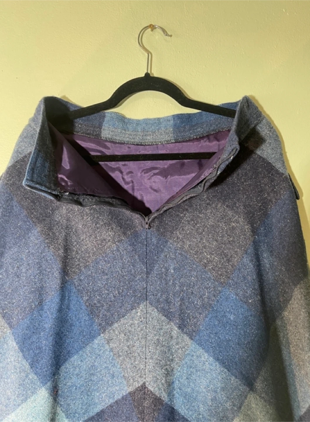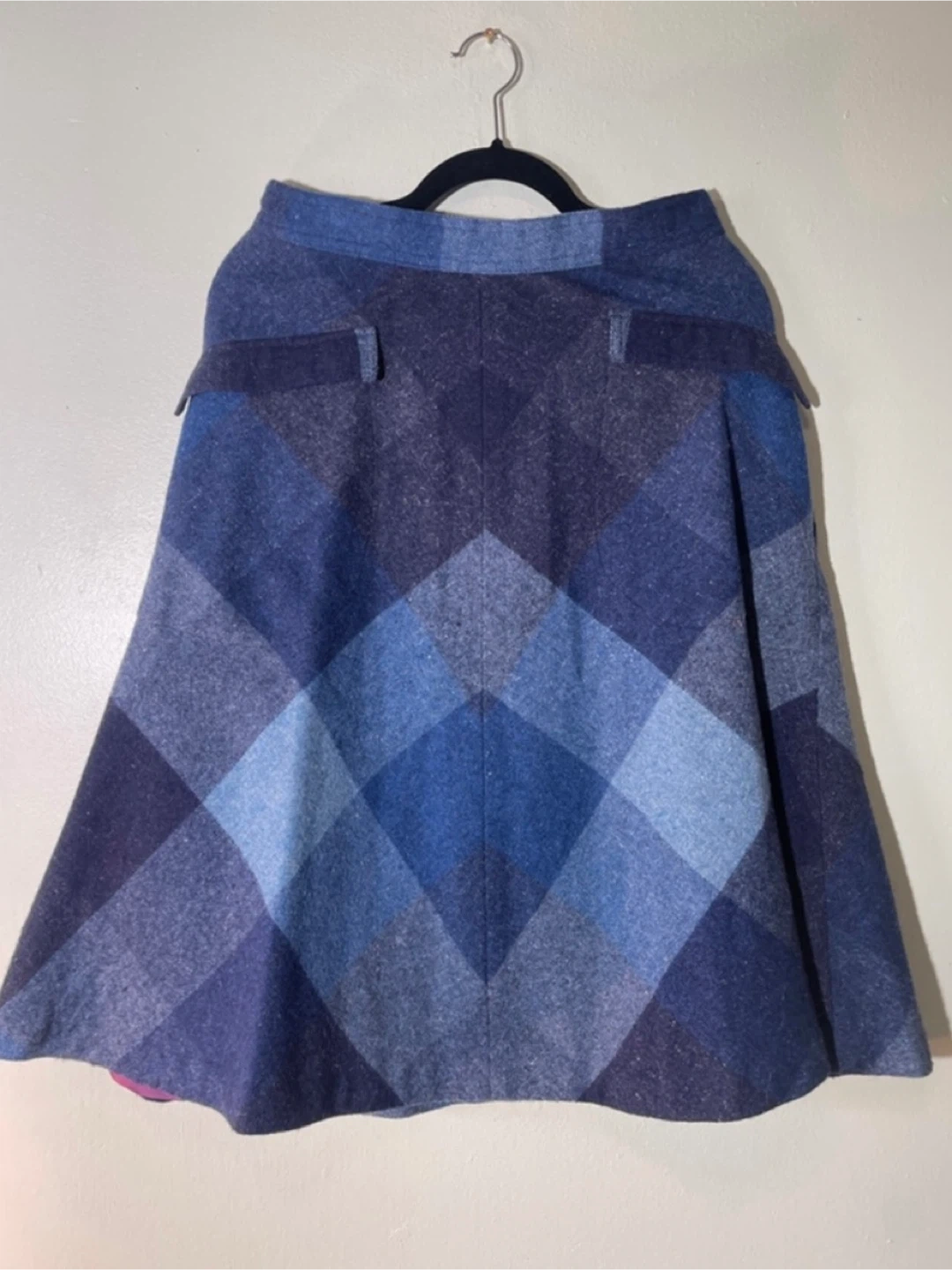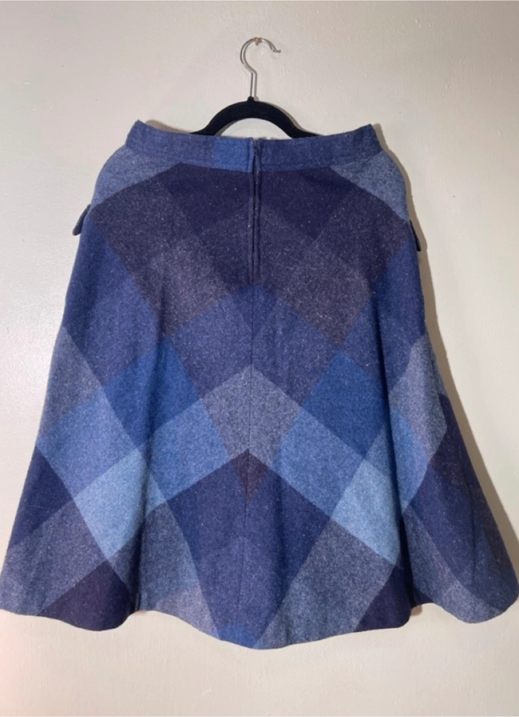 Timeless vintage blue plaid A-line skirt, beautifully constructed in wool blend with a classic structured silhouette.