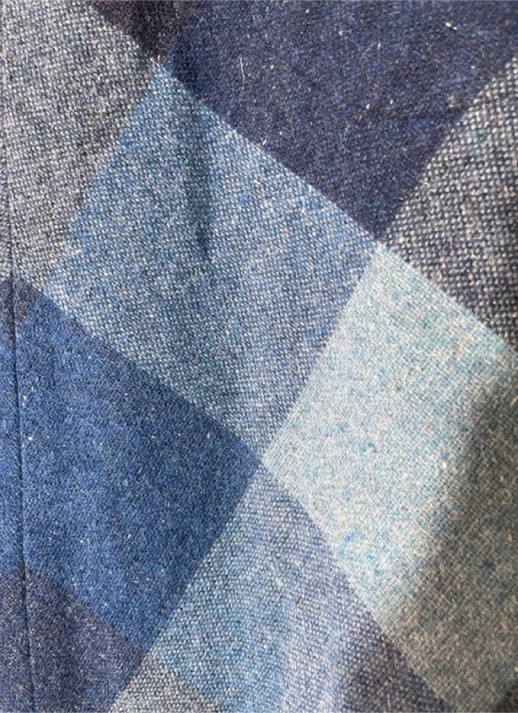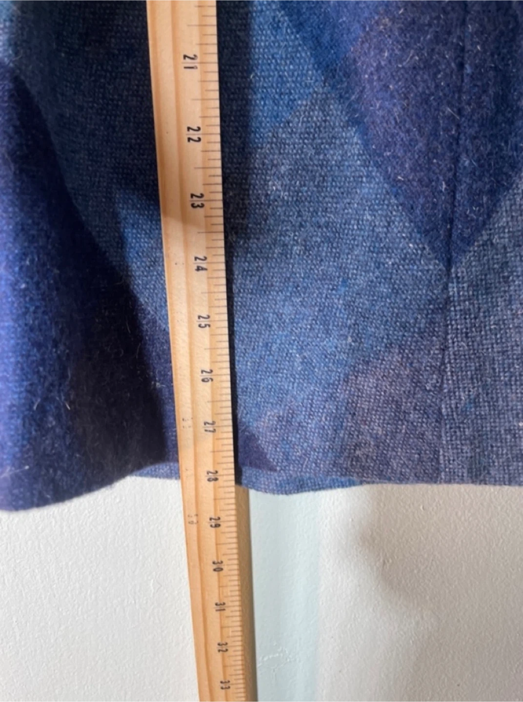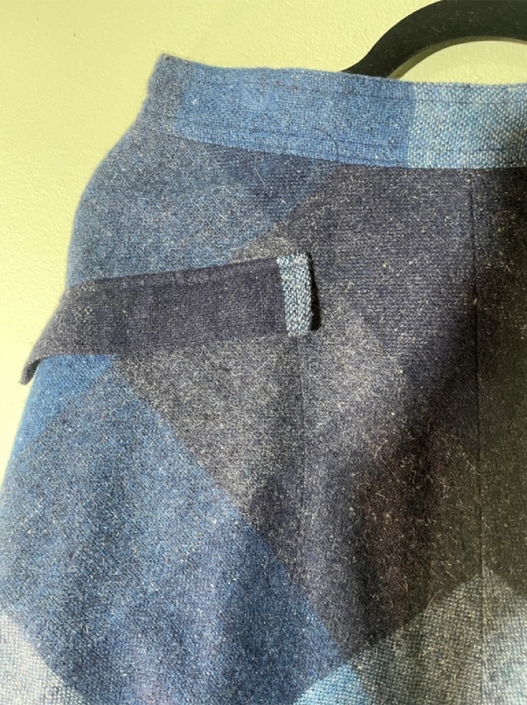 The plaid pattern is perfectly balanced in rich blue tones, making it easy to style for fall and winter with boots, knits, or a fitted blazer. This is the kind of piece that lasts decades, not seasons.