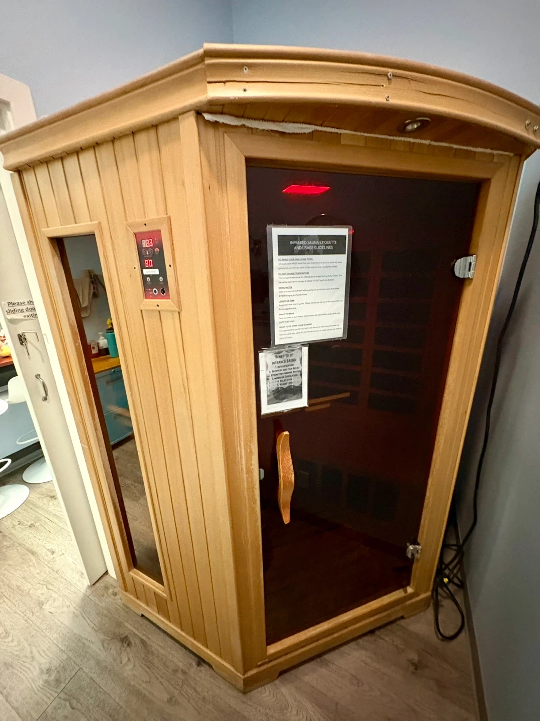 Selling an infrared sauna. It's in good condition and ready for a new owner! Perfect for relaxing and detoxing in the comfort of your own home. Needs to be dissembled and moved.