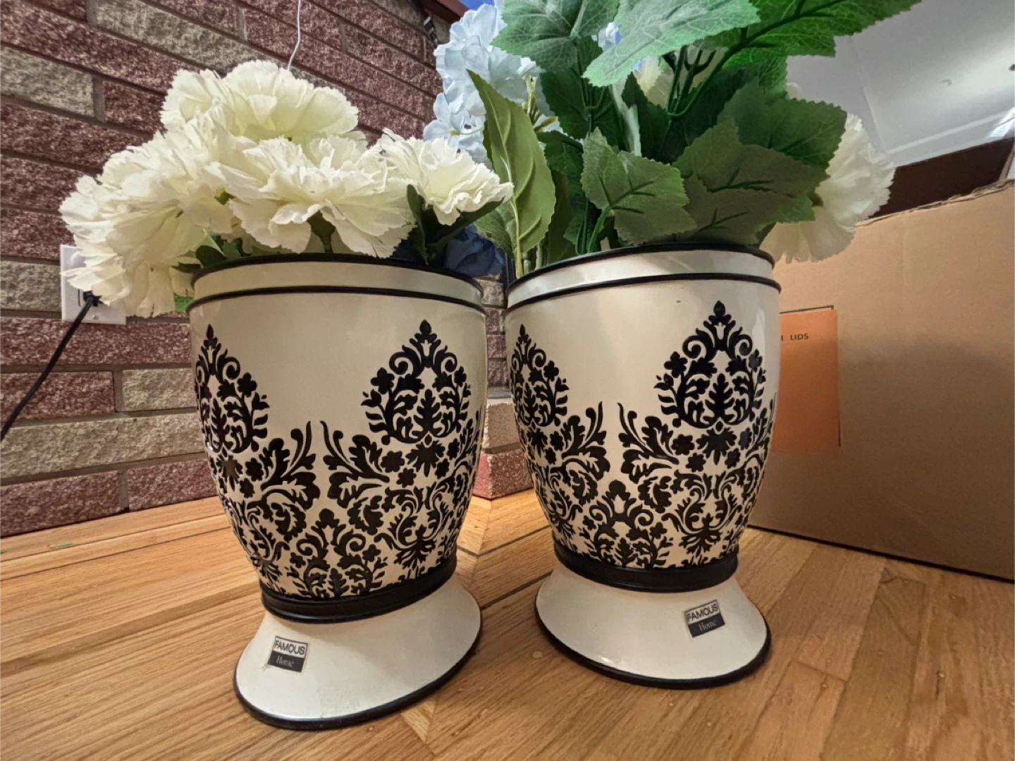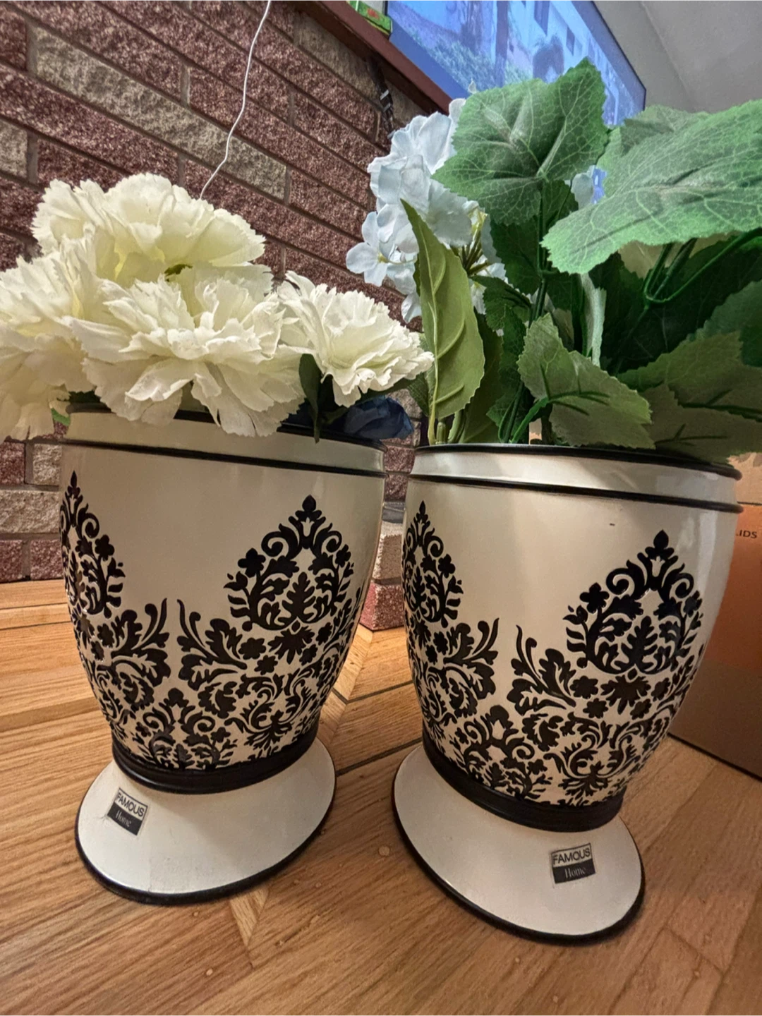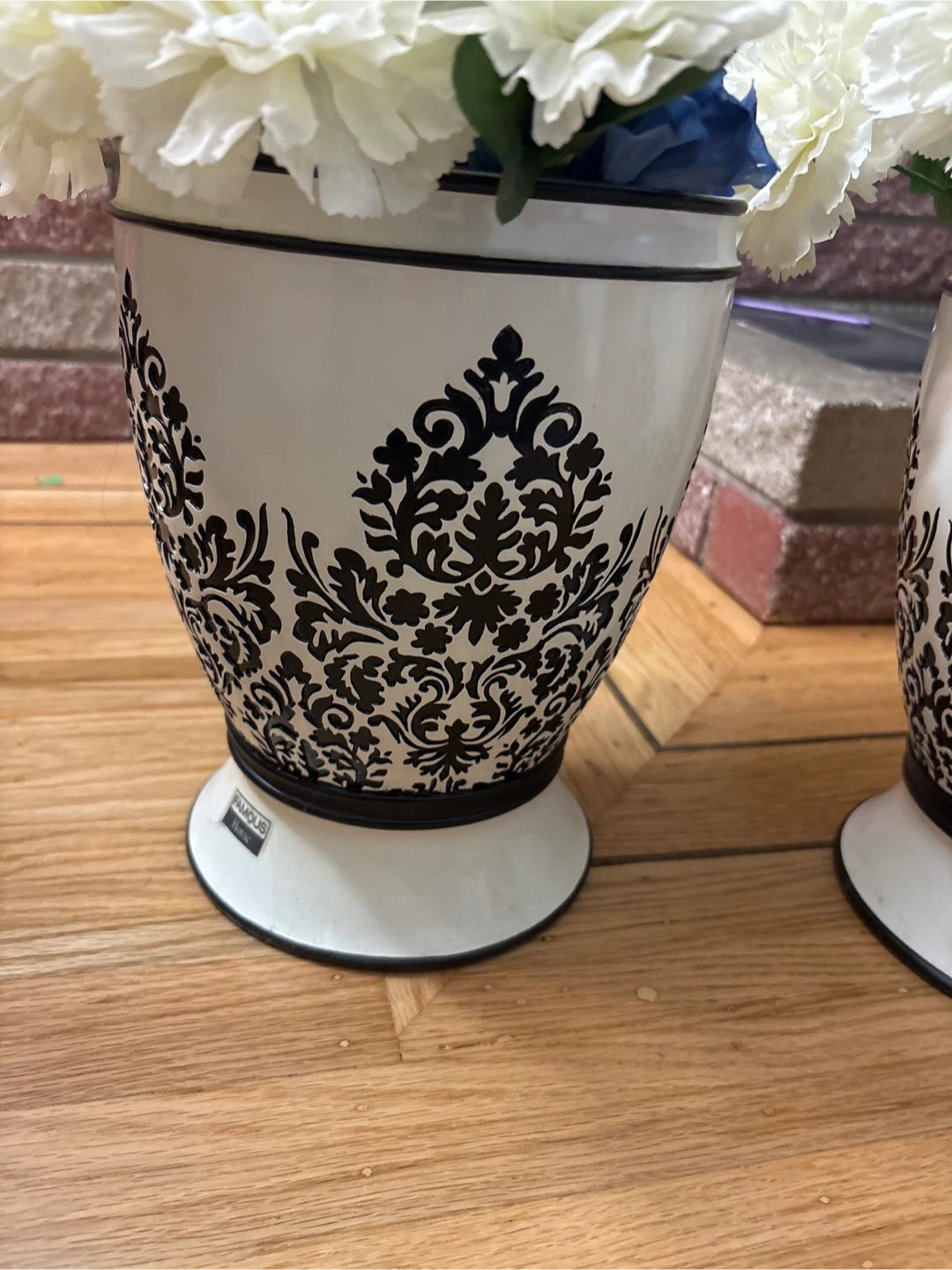 Selling a set of two decorative vases from Famous Home! They're white with a black floral design. These would look great with any decor. Originally bought for $59.99