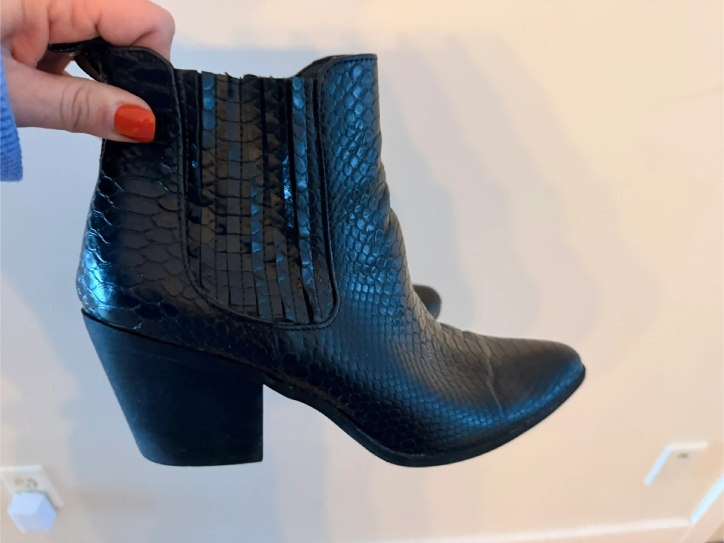These black ankle boots have a stylish snakeskin texture. They're in great shape and ready for a new owner!