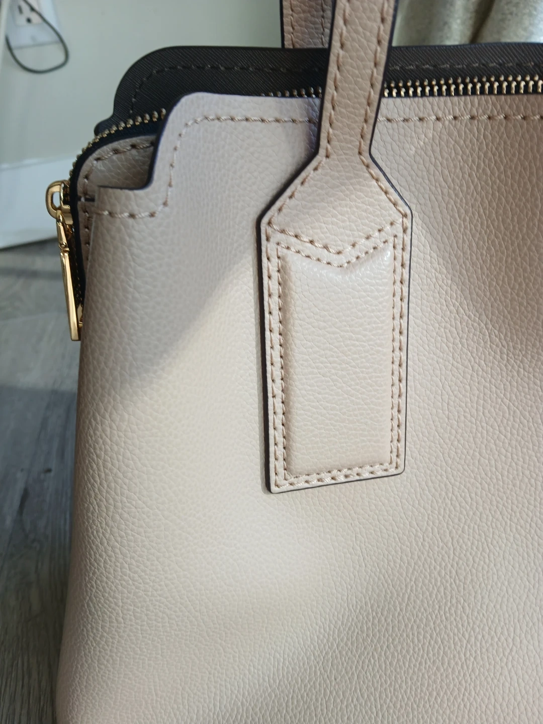 Type: Leather tote bag with zippered middle area, large open areas, and smaller zippered pocket inside. Versatile as it matches with basically any outfit!