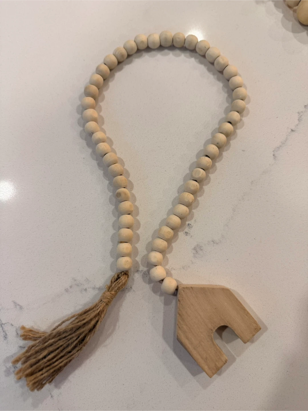 Here's a cute wood bead garland! It features natural wood beads and a little wooden house accent. It would be perfect for adding a touch of rustic charm to your home decor