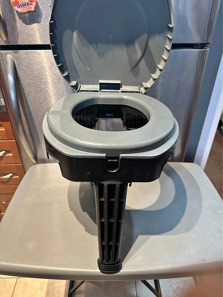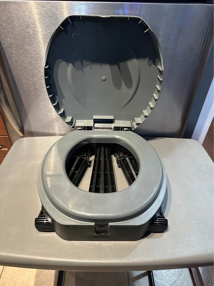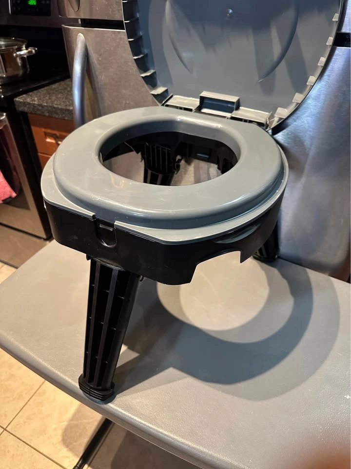 Folding toilet and 6 poop bags. It’s never been used (I swear)