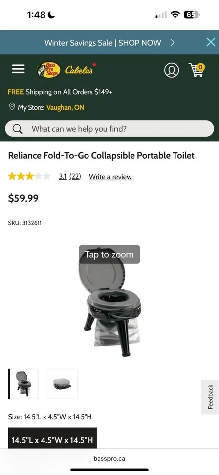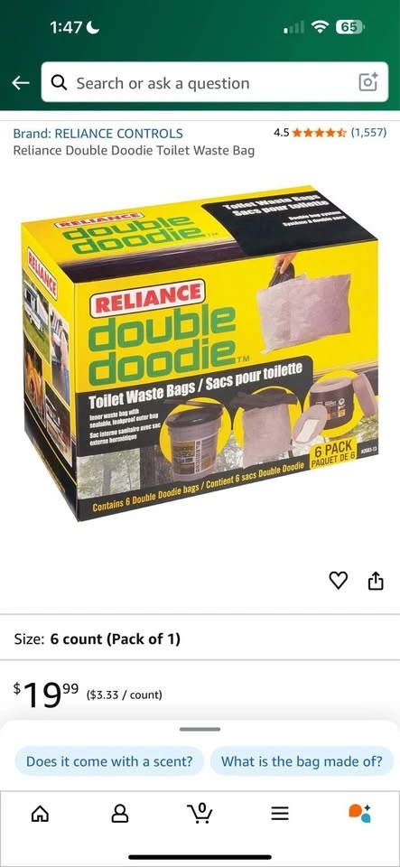 Toilet was $60 and poop bags were $20 plus tax. I paid $90 for this.