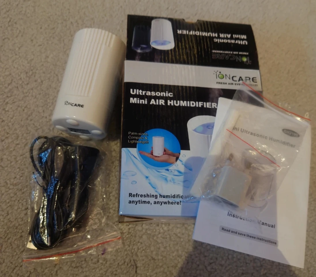 Selling a mini air humidifier by Ioncare! It's ultrasonic and comes with the box and instructions. It’s palm-sized, compact, and lightweight, making it easy to use anywhere you need a little extra humidity. It also comes with its components!