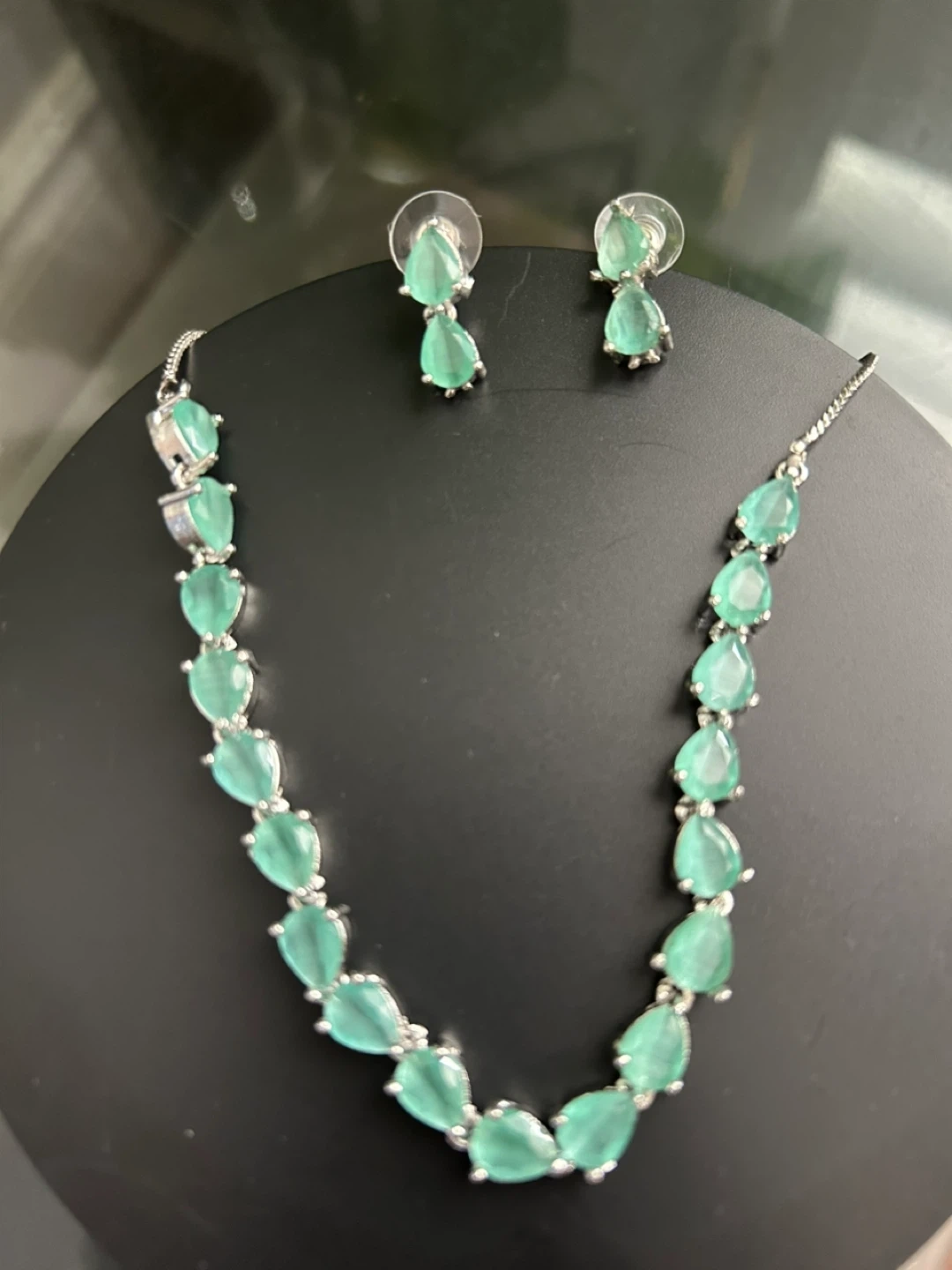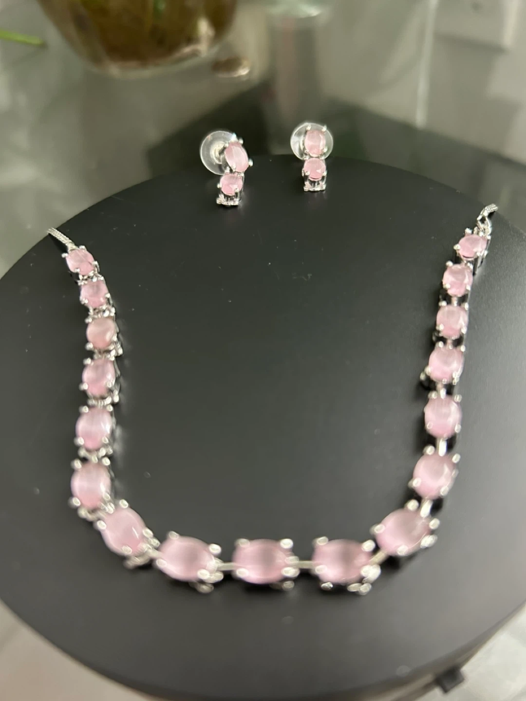 Selling these beautiful jewellery sets! Each set includes a necklace, earrings,Available in blue, white, green, and pink. Perfect for adding a touch of elegance to any outfit!