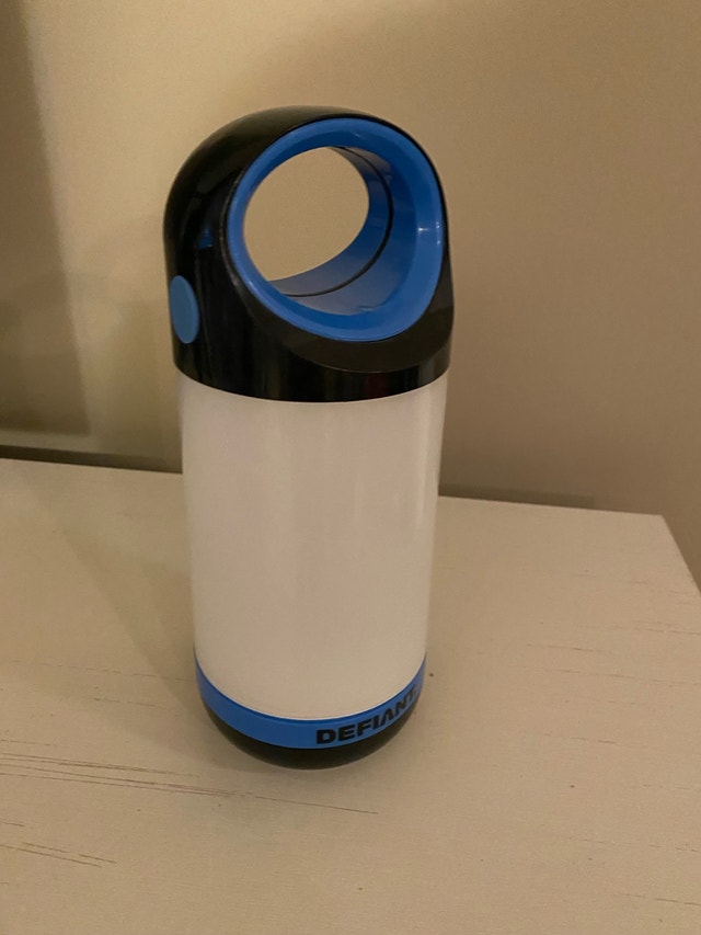 This is a Defiant LED camping lantern, perfect for lighting up any campsite or backyard gathering. This lantern is in used condition, so it has a bit of character, but it functions perfectly. It provides bright, efficient lighting wherever you need it.