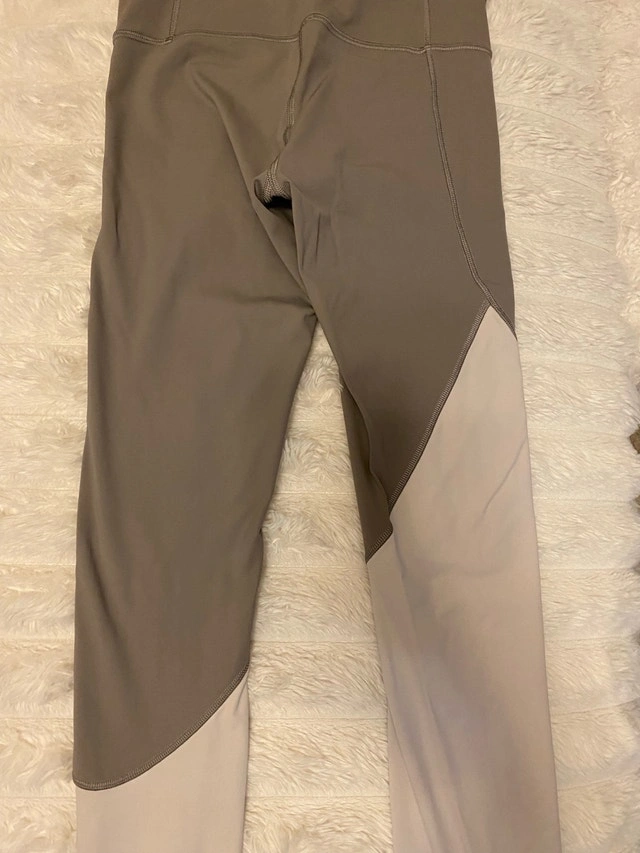 Get ready to conquer your workout in these gently leggings from Lululemon, designed for ultimate comfort and flexibility during any activity. These leggings feature a stylish two-tone design with a high waistband that provides a flattering fit and keeps you feeling secure. Perfect for yoga, running, or just lounging around, they're a versatile addition to any active wardrobe.