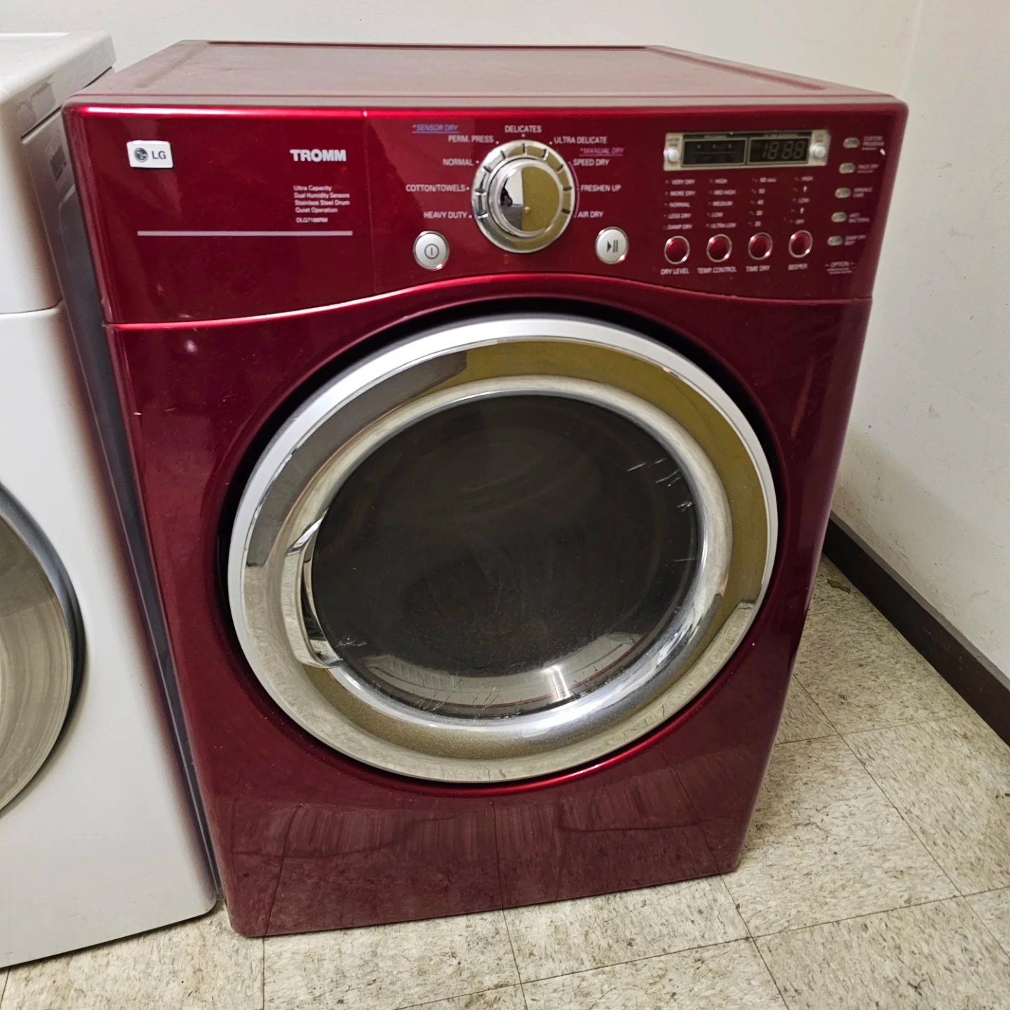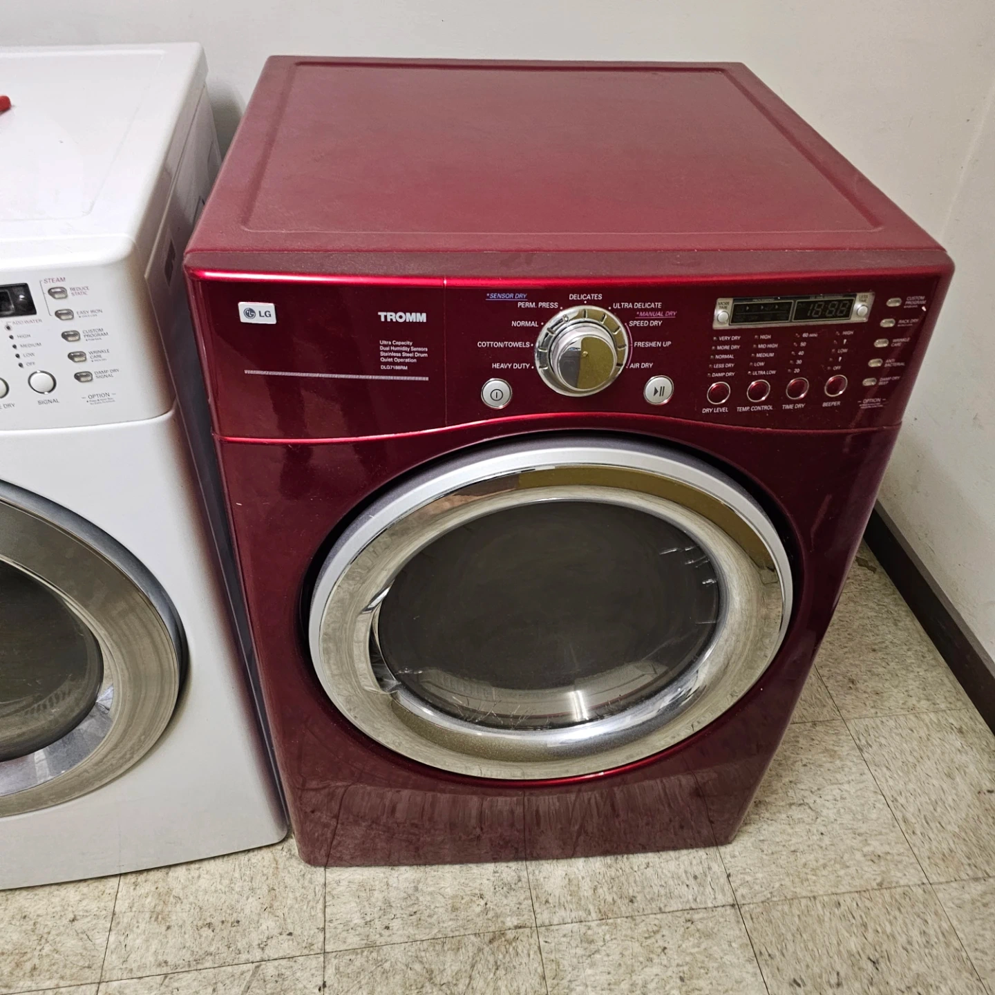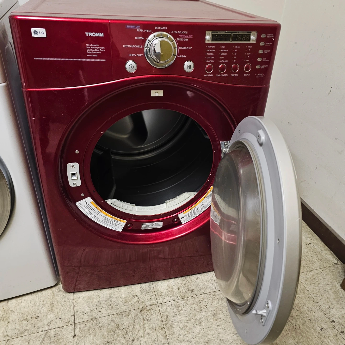 Selling a red LG Tromm front load dryer. It has multiple settings including: - Perma Press - Delicates - Normal - Cotton/Towels - Heavy Duty - Ultra Delicate - Speed Dry - Freshen Up - Air Dry