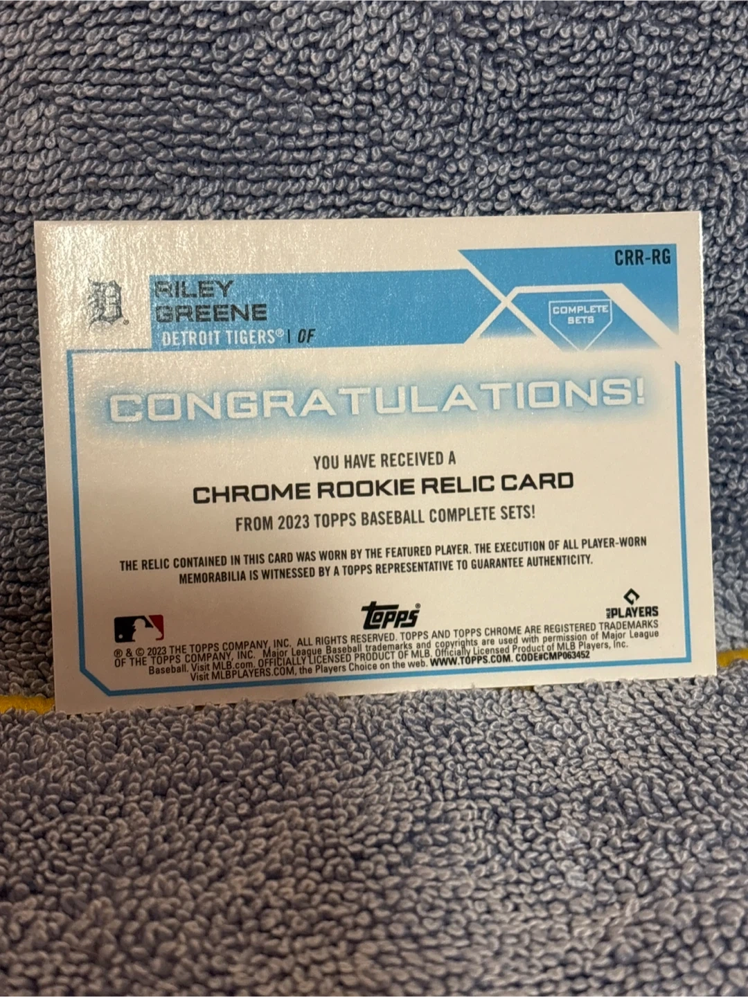 Topps Riley Greene Chrome Rookie Relic Card