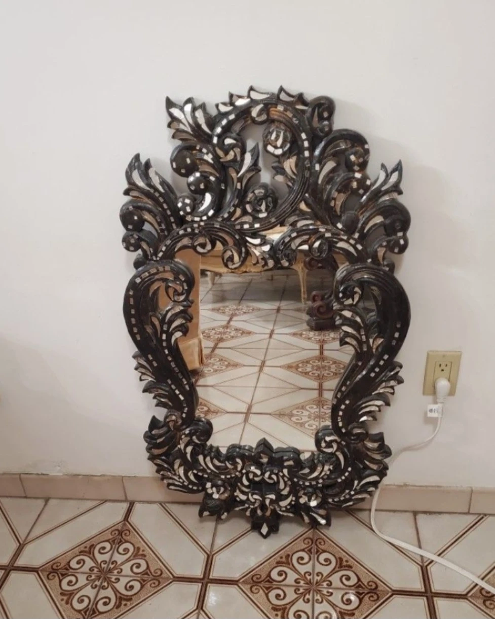 Beautiful vintage glass mosaic Mirror. Has Mirror pieces around it. Made in italy handmade.