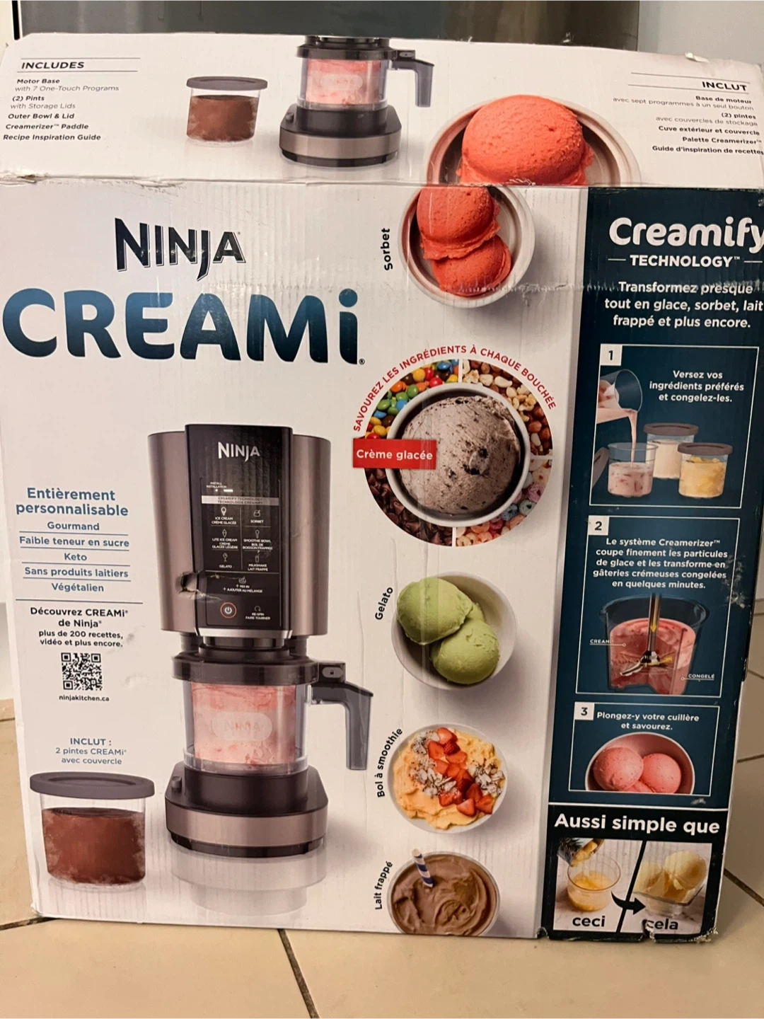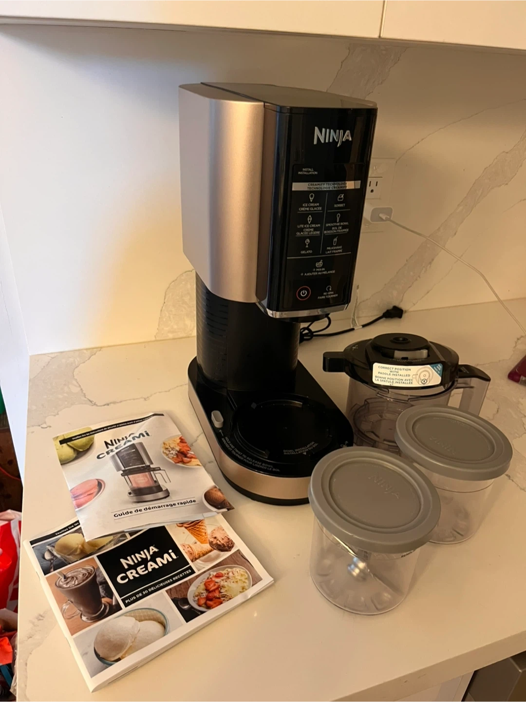 It includes two pints and a recipe guide. I got it as a gift but only used it 3 times. Excellent condition.