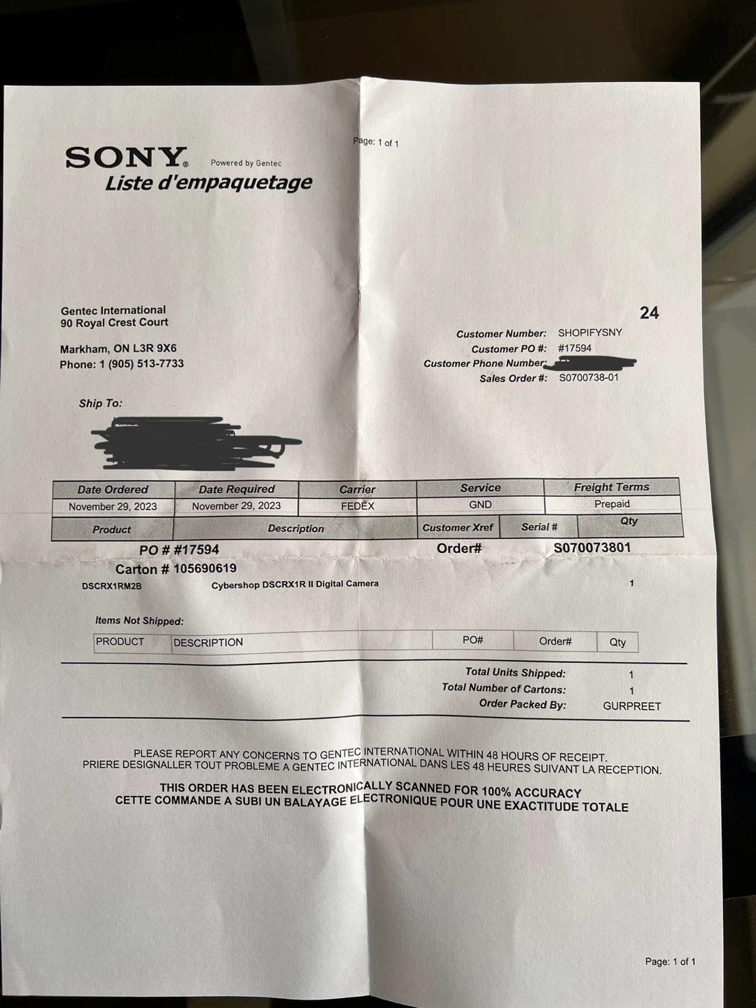 Brand New Sony RX1R II Cyber-shot digital camera in black.