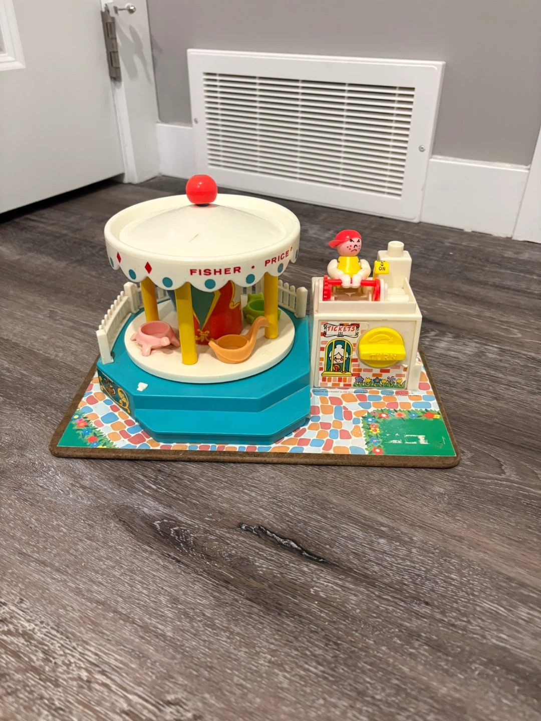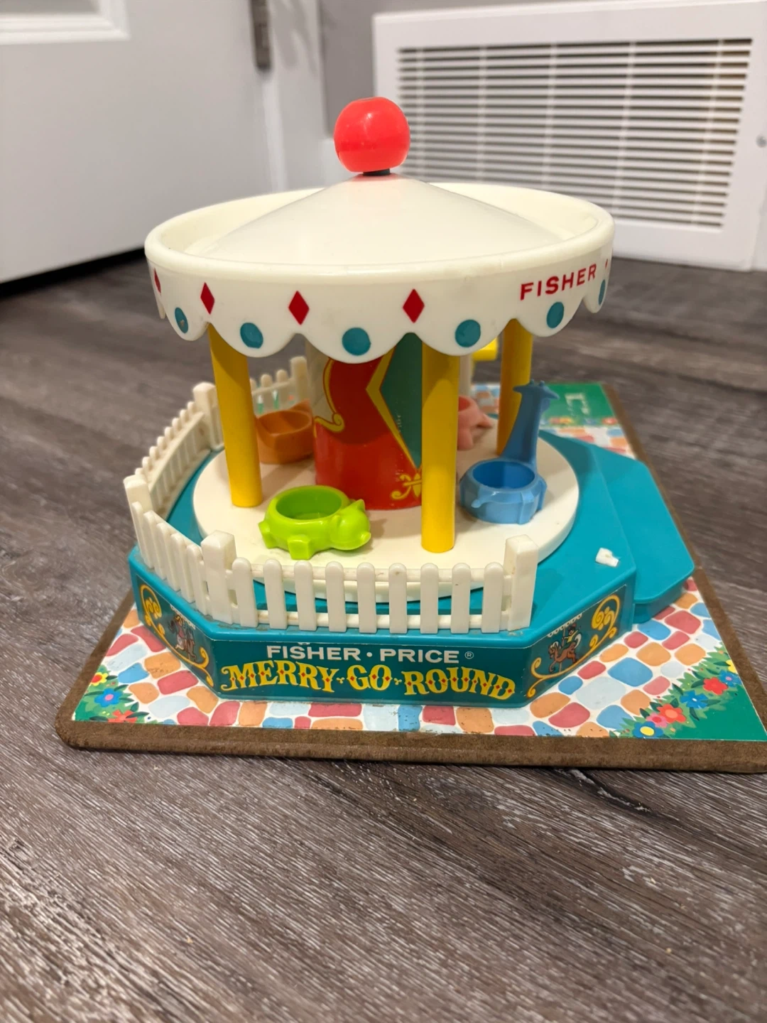 Selling a vintage Fisher Price Merry-Go-Round toy! It's a classic and would be a great addition to any collection. This toy has a charming, nostalgic feel and is sure to bring back memories